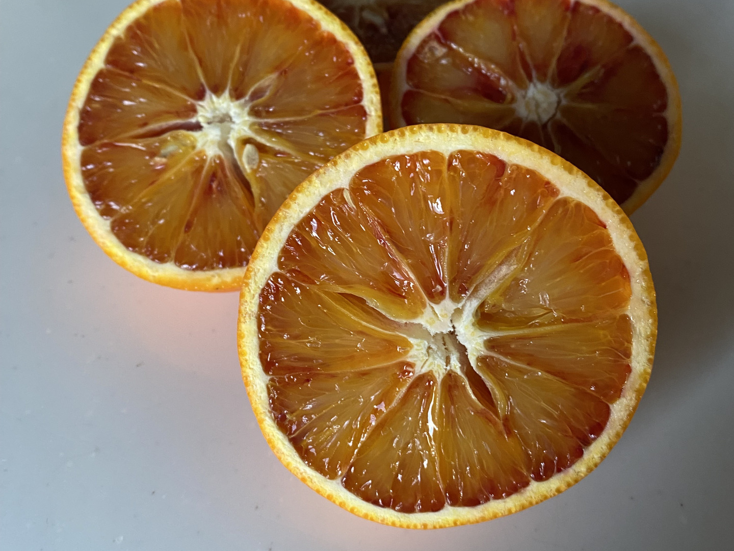 ブラッドオレンジ(タロッコ)の赤い果肉の秘密は、「アントシアニン」と呼ばれる色素によるものです。「アントシアニン」はフラボノイドの一種で、抗酸化物質として知られており、ブルーベリー等にも含まれているポリフェノールの一種なんです♪