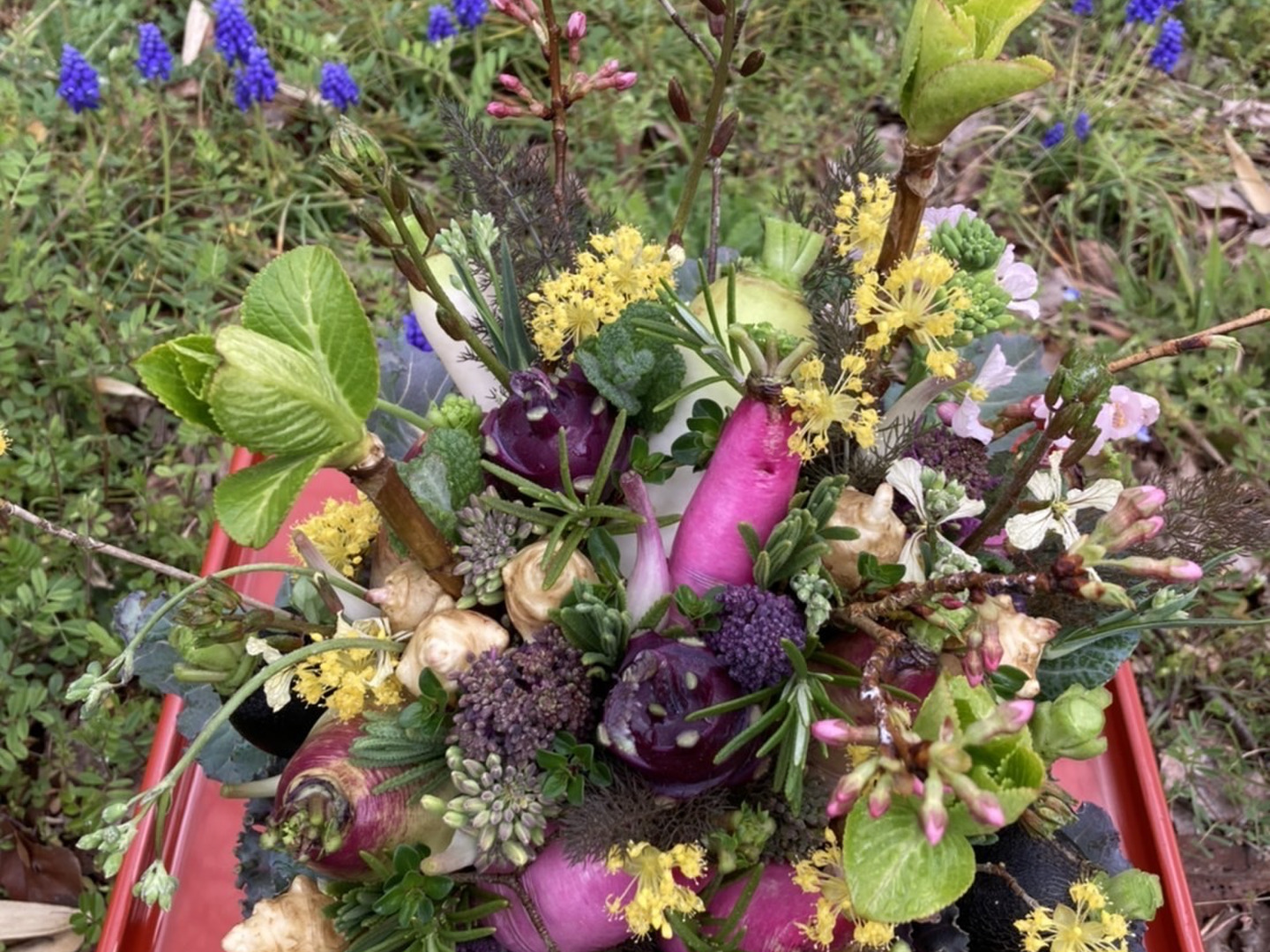 【期間限定】【春ギフト】花と野菜をミックスしたブーケ BOXタイプ【カラフルなミニ野菜】【お誕生日】【開店祝い】【周年祝い】【お供え】