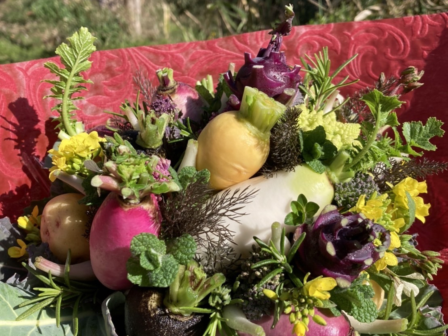 ※期間限定、花と野菜をミックスしたブーケとなります。