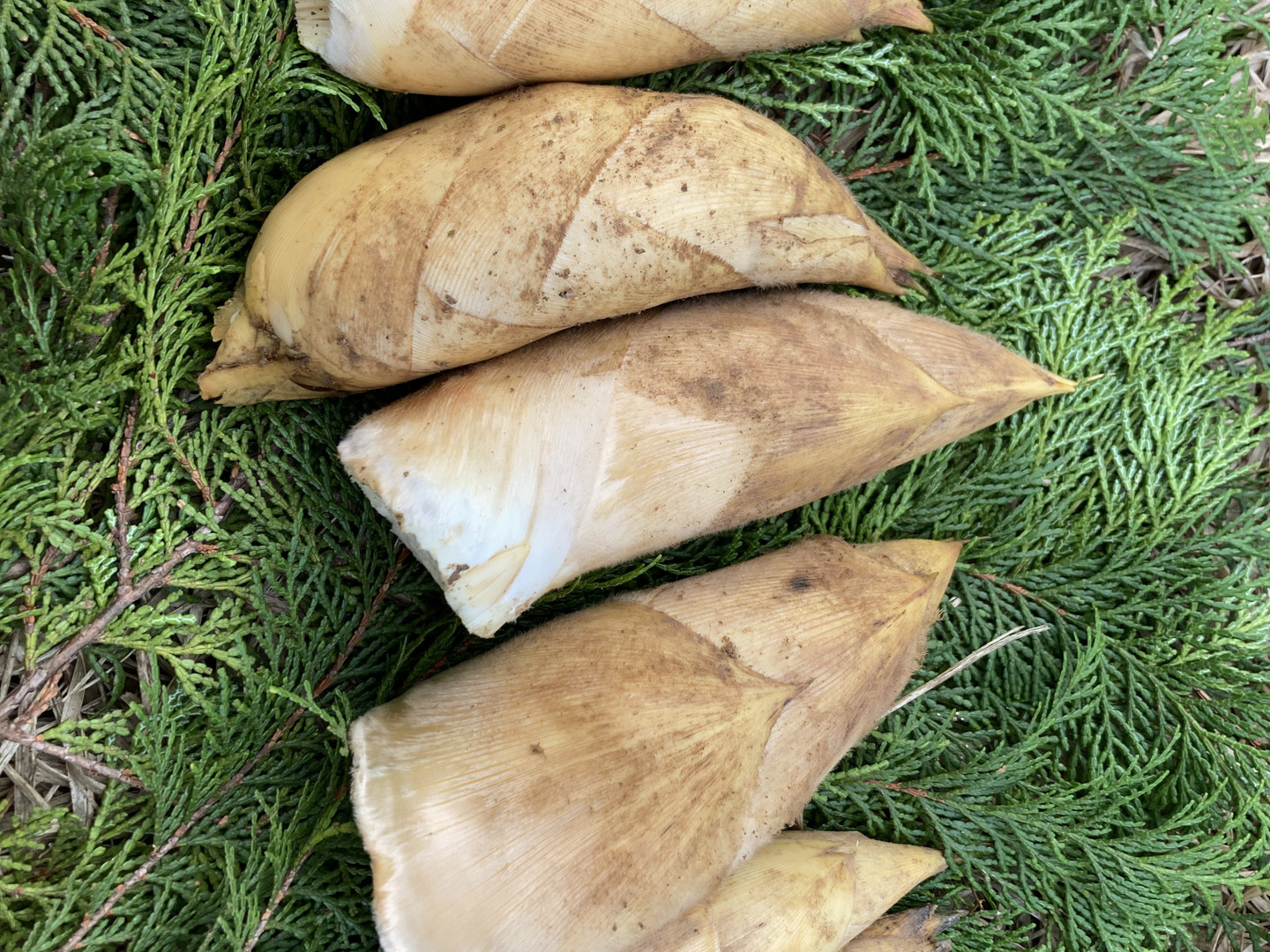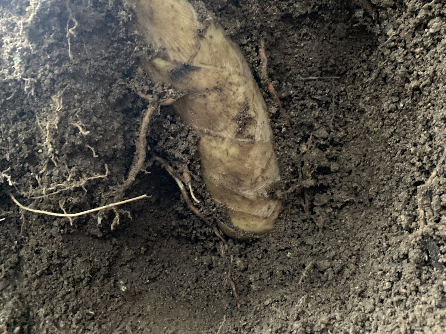 地面から筍の全く姿がほぼ見えない状態のものを、本日3月17日の早朝に掘り出した筍です。