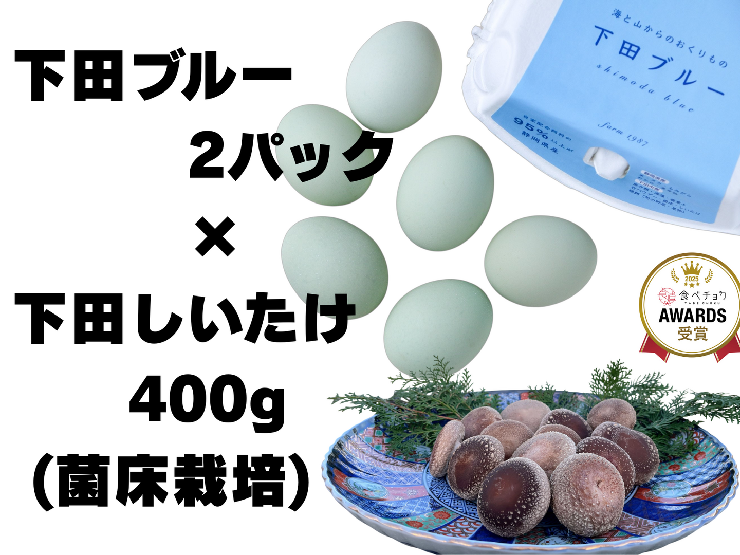 【母の日ギフト】 幸せの青い卵「下田ブルー」2パック、「下田しいたけ」400gセット