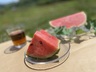 ひとりじめ: 高糖度でシャリ感の強い小玉スイカです。皮が薄くギリギリまで甘い果肉が詰まってます。