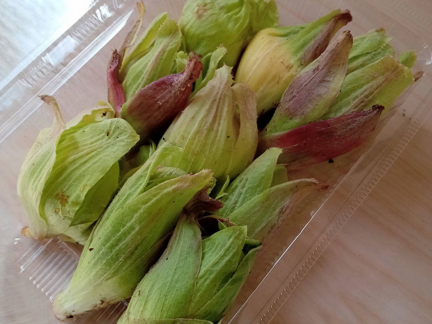 ふきのとうの根元を少し切り落とし、軽く水洗い。