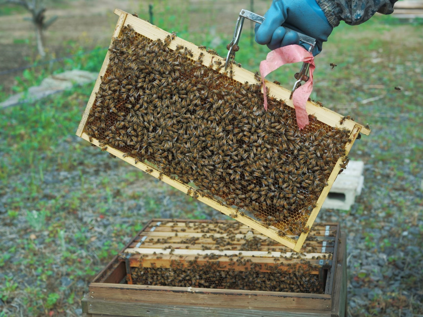 栗園の敷地内に那須烏山の「うすい養蜂園」さんの巣箱を置いていただき、桜の花から採取したはちみつです。