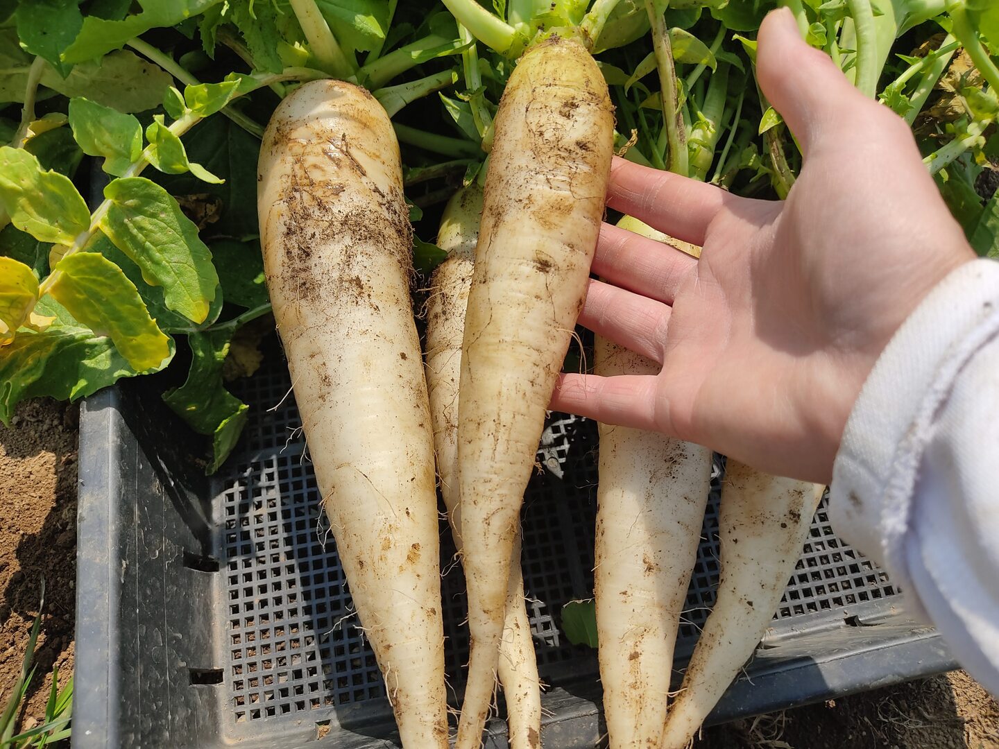 厳しい寒さの中でゆっくりと育ち、春の光を浴びて花を咲かせようとしている、わずかな期間しか収穫できない希少な大根です😊