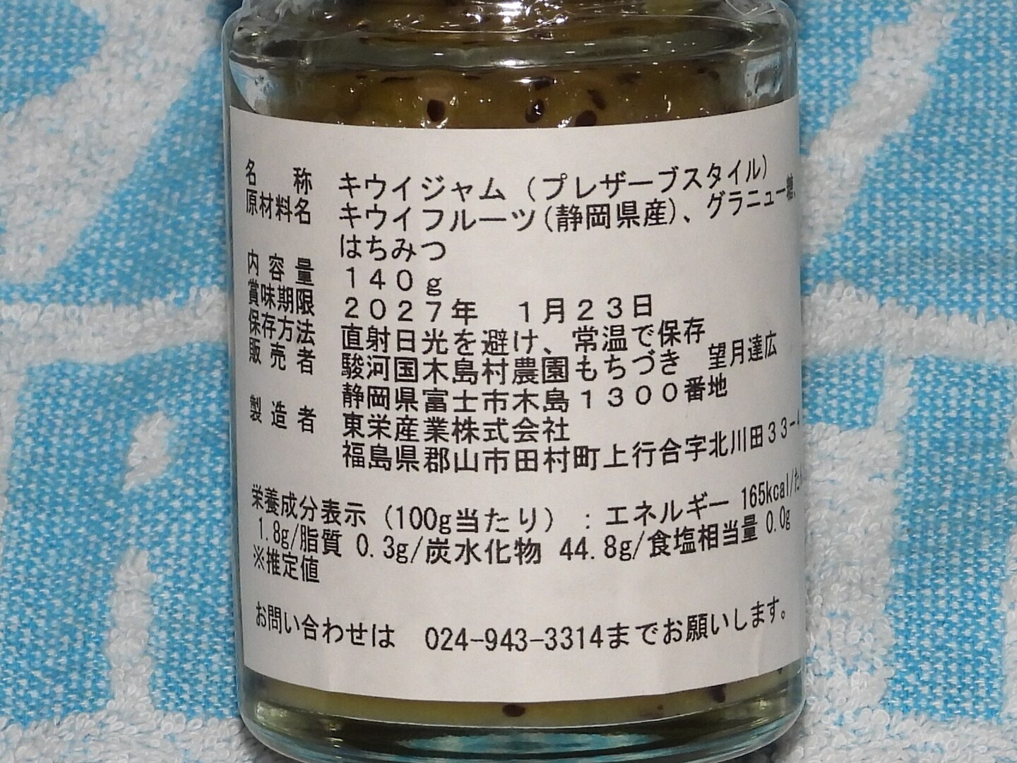 エメラルドキウイジャム(瓶詰品、内容量140g、蜂蜜入り)