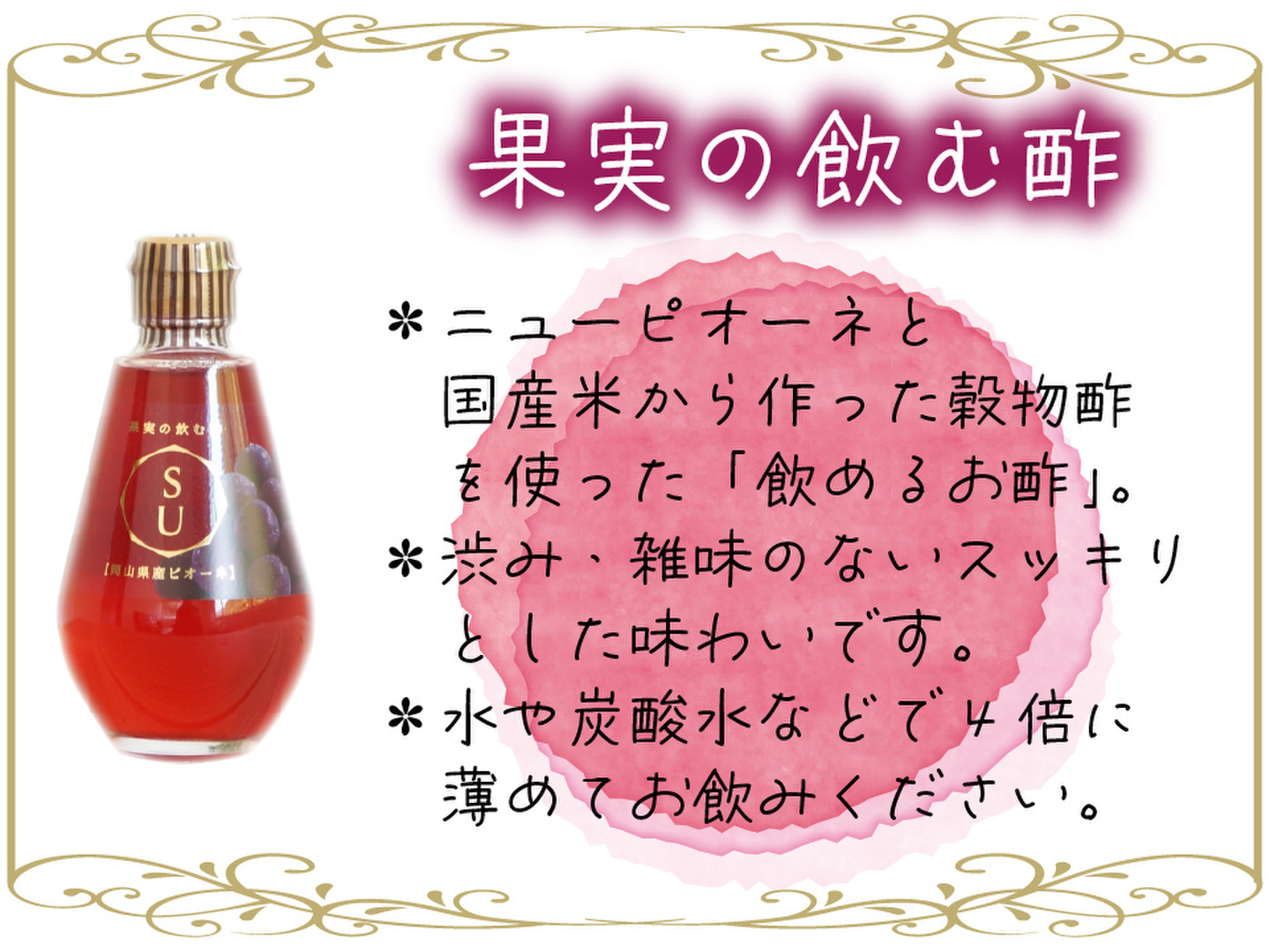 - すっきりした味わいで飲みやすい、果実の飲む酢!