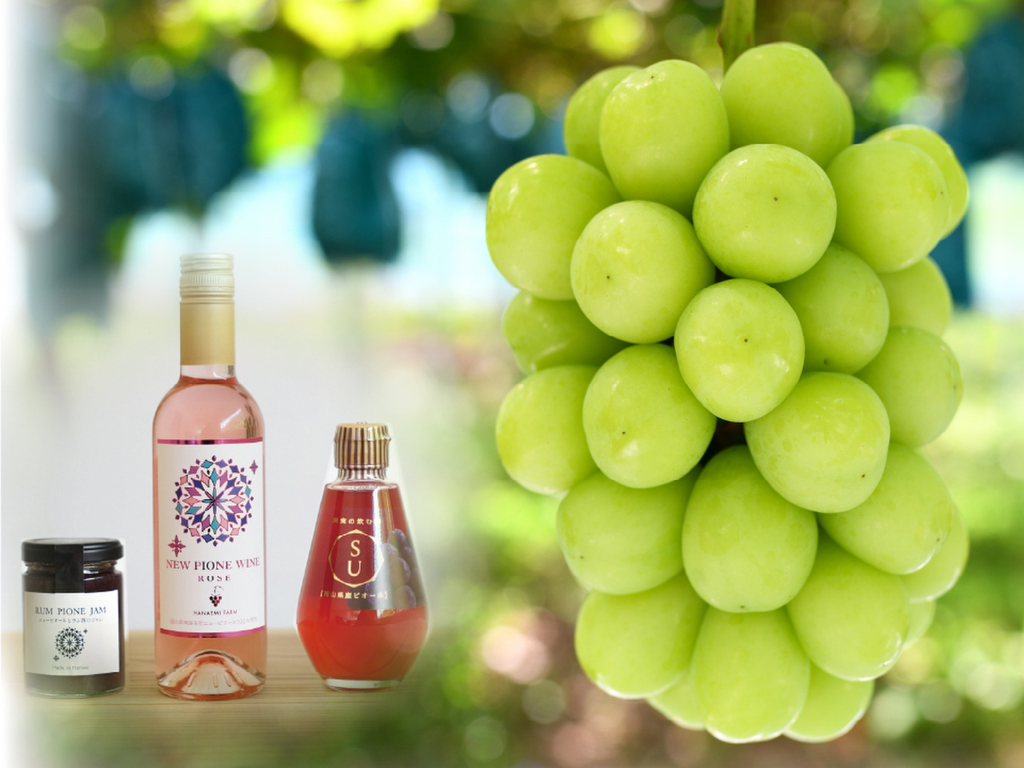 花笑み農園 シャインマスカットと加工品セット(ピオーネジャム&飲む酢&ピオーネワイン)【9/23~順次発送】S-JWN