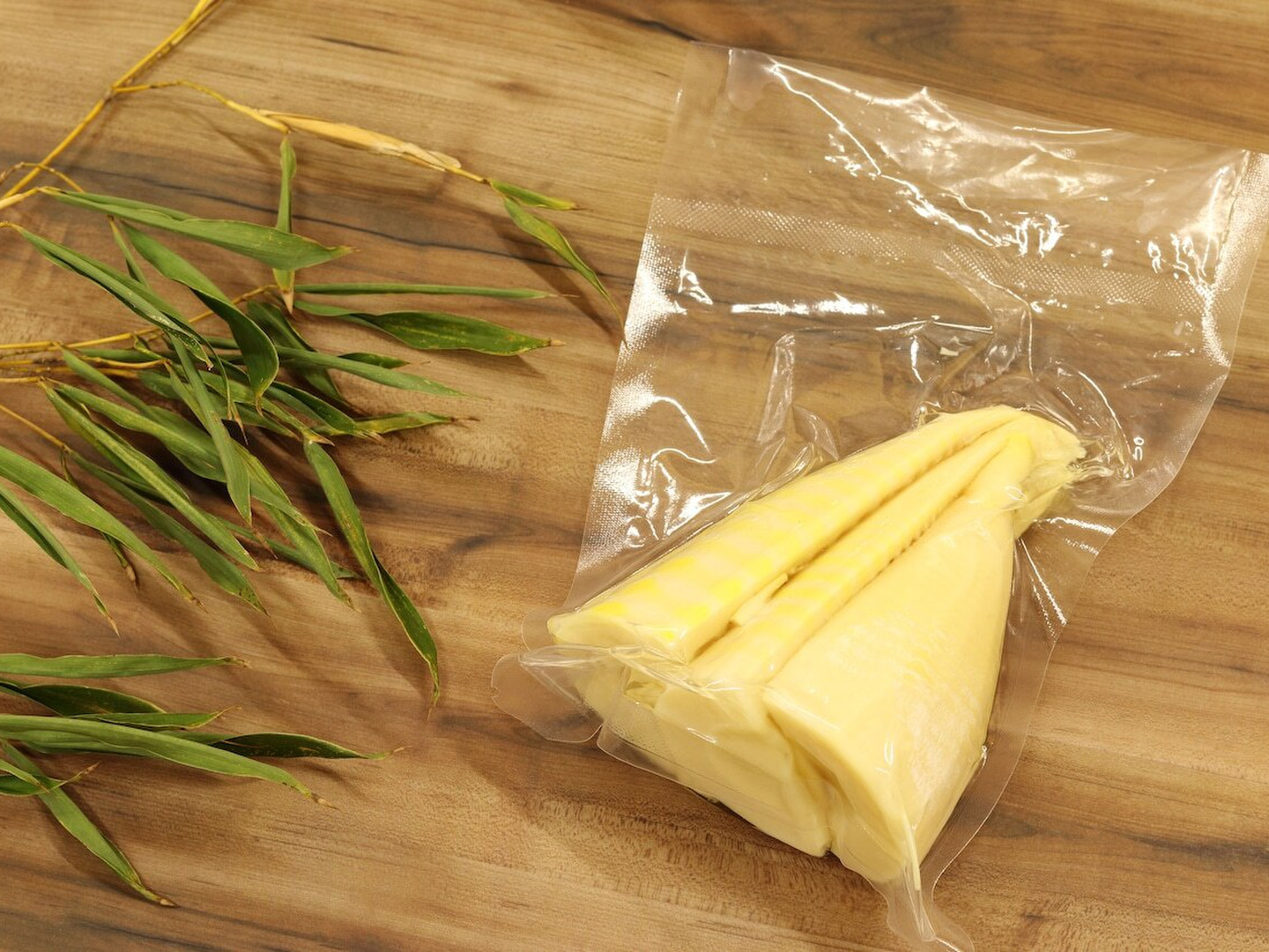 もともとアクが少ないたけのこなので、水だけで茹でてアク抜きを行っていることもあり、たけのこ本来の香りと味、食感を楽しめます。