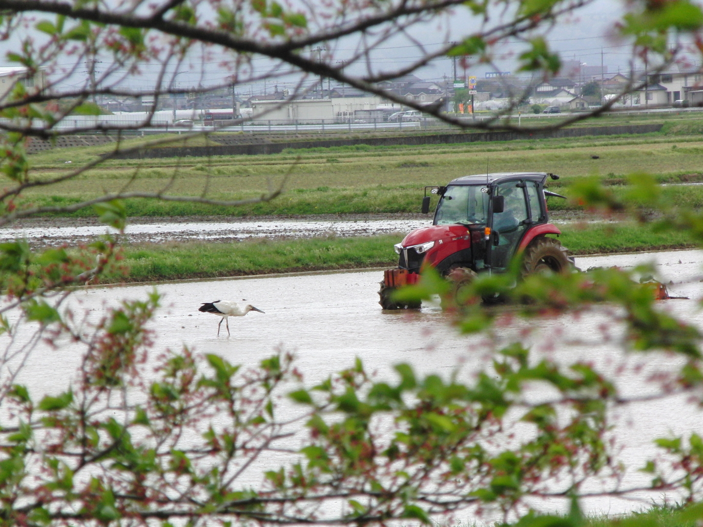 • 1 コウノトリの野生復帰を農業で支援-環境保全型1集落1農場方式の集落営農です
