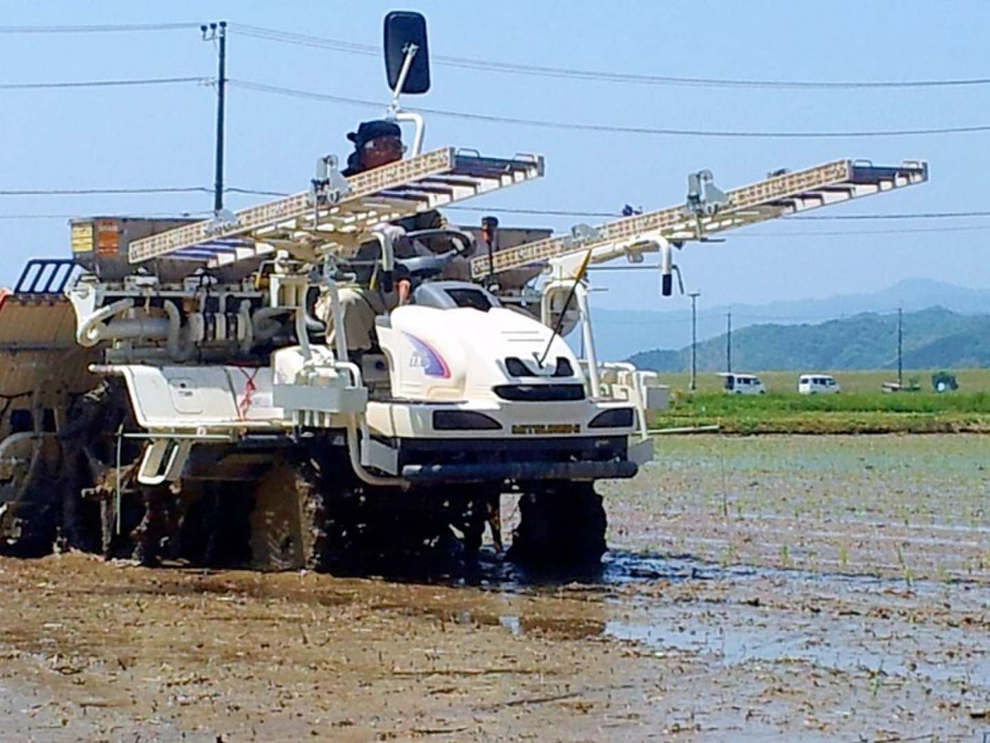 毎年、田植えの時期にはテレビ取材を受けております。 そのほかにも、農林水産大臣賞受賞や、先進的な農業を進めるなかで数多くの取材を受けています。 また、農業の大課題に立ち向かい、村で農地を守る草刈隊を結成して除草を合理的に作業する形は、西日本各地から同業者、団体から視察をうけるなど注目されていて、農業専門紙に掲載され、草刈りCDにもなっています。