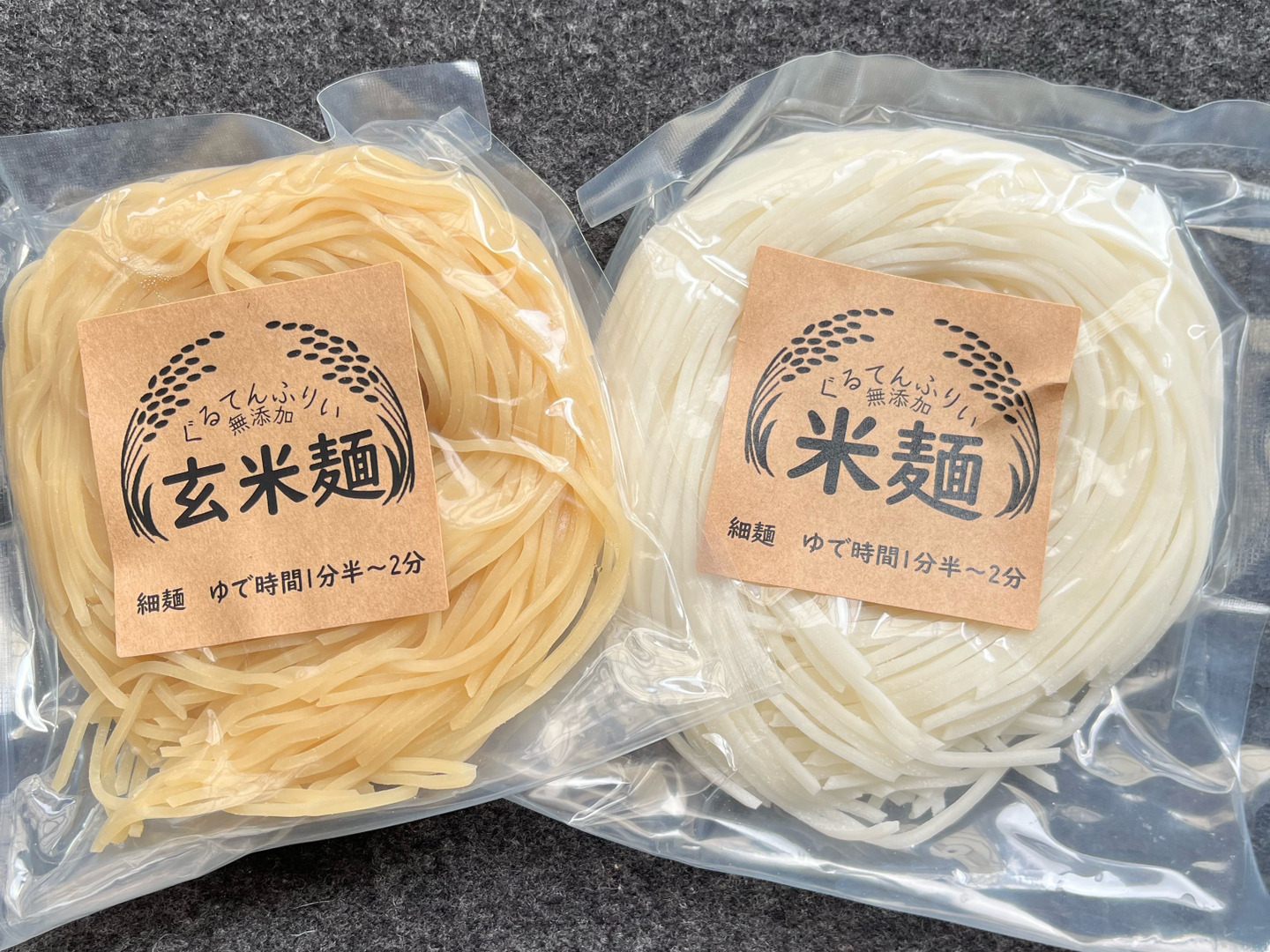 ここでは人気の米麺と玄米麺の細麺を食べ比べできるセットにしました。
