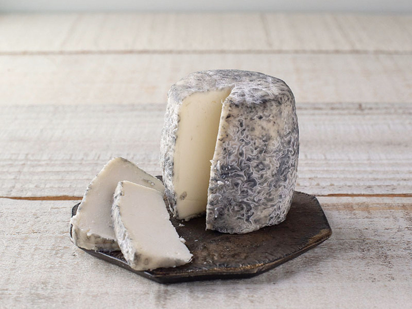 炭をまとわせた見た目が特徴的なフレッシュチーズ。