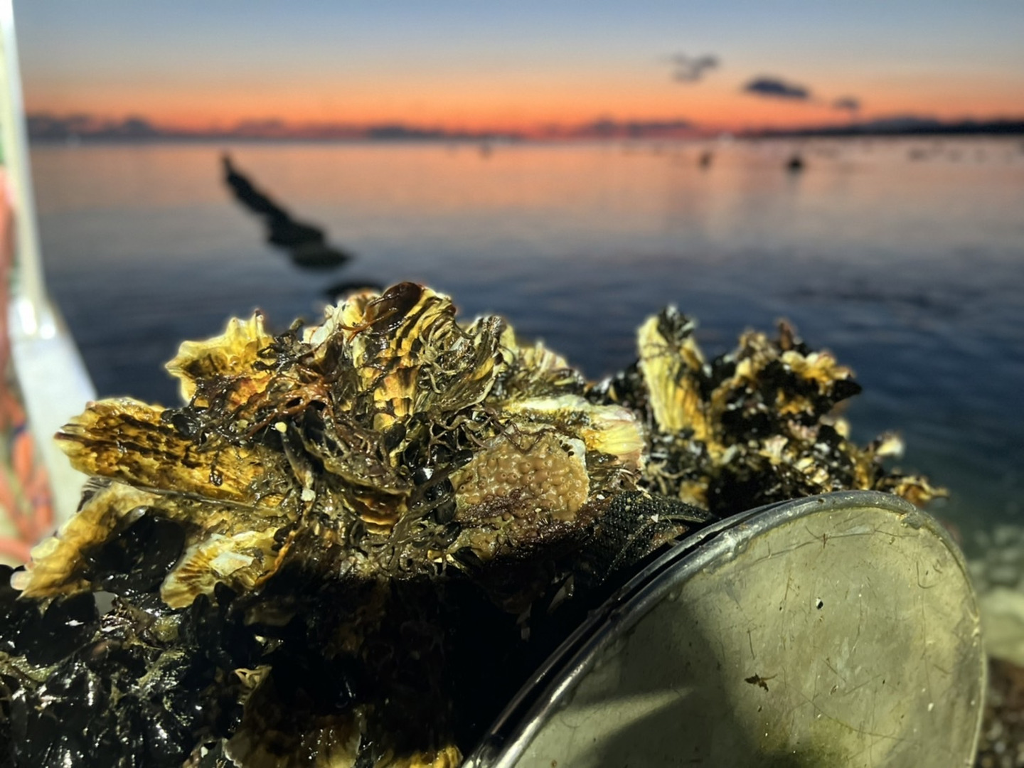 成長効率の良いロープ式で2年間大きく成長させた後、一度水揚げして、ナタを使って手作業で一粒ずつにバラします。また、栄養吸収を妨げるムール貝やフジツボ等の付着物を丁寧に取り除いた上で、丸カゴに入れて数ヶ月間再び海に垂下することで、栄養を最大限に吸収し、加熱しても縮まない大粒でギッチリと詰まった身に。正にThe Oyster!であり、三陸の海をジオ(自然を感じ)る牡蠣です。