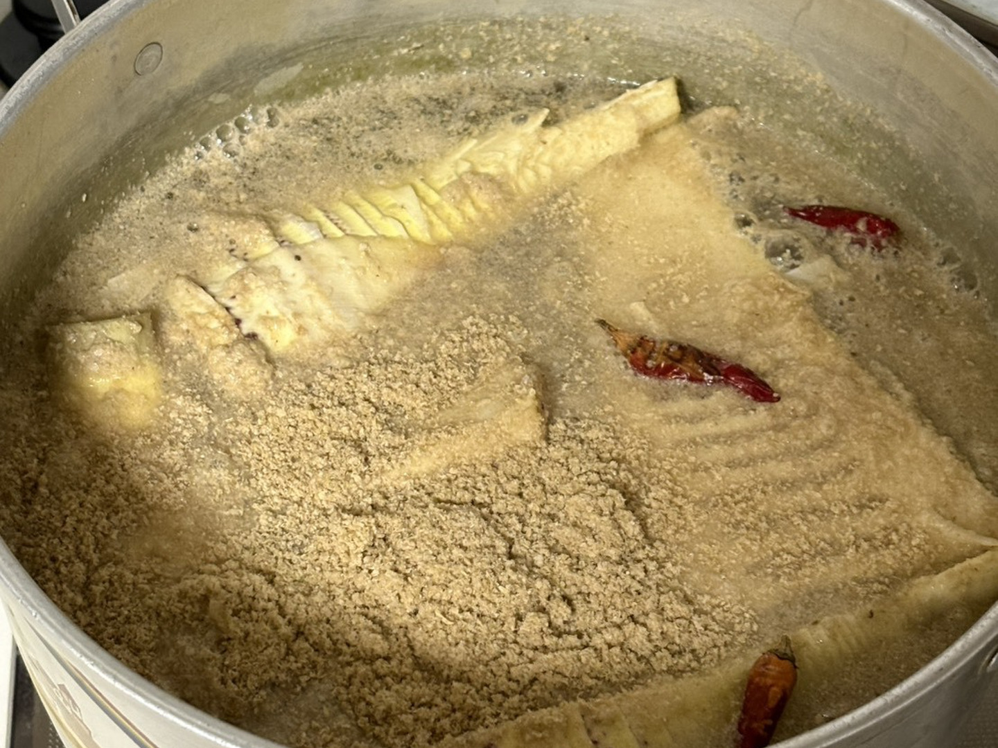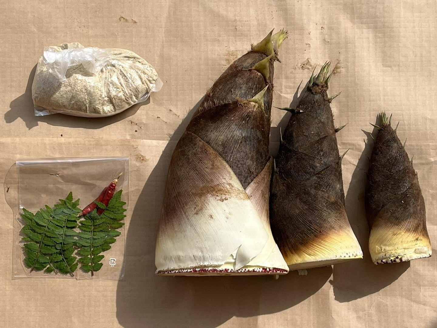 山椒の葉、米ぬか、唐辛子2本を一緒に同梱いたしますので、あく抜きをして、木の芽和えなどで春の風味をお楽しみください。