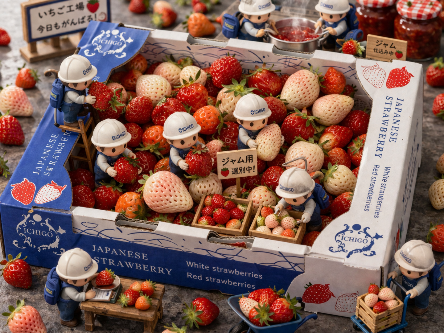 サイズが不揃い、完熟のいちごや、表面に傷のあるいちごが含まれます。