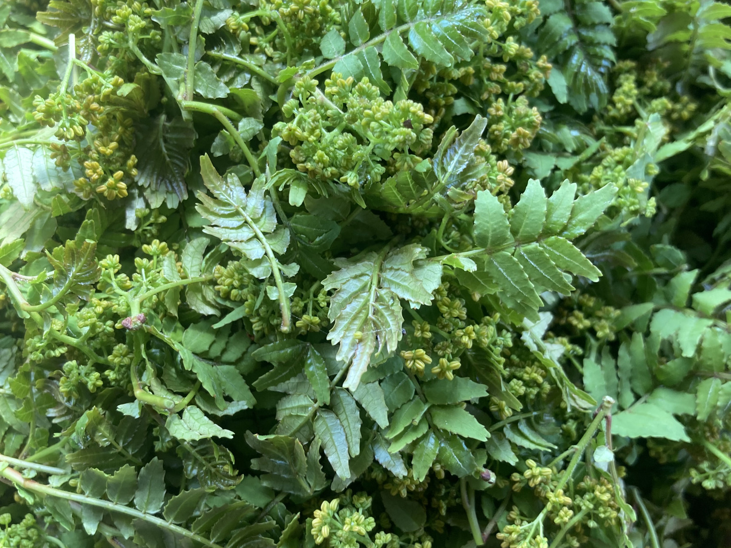 黄色い花山椒の葉っぱ付きの状態のものです。