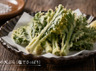 春菊を3cm幅に切り、少量の衣(天ぷら粉)を薄くまとわせます。