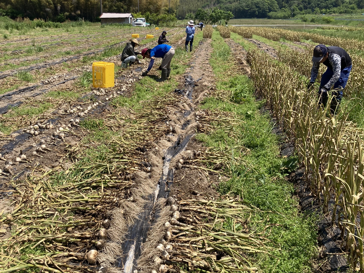 その乾燥処理をする前の、収穫直後のみずみずしい生ニンニクをお届けします!