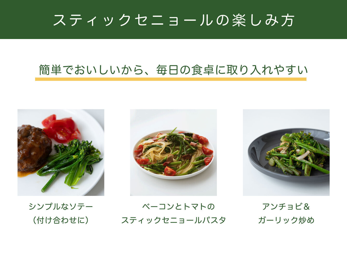パスタや肉料理の付け合わせにもおすすめ