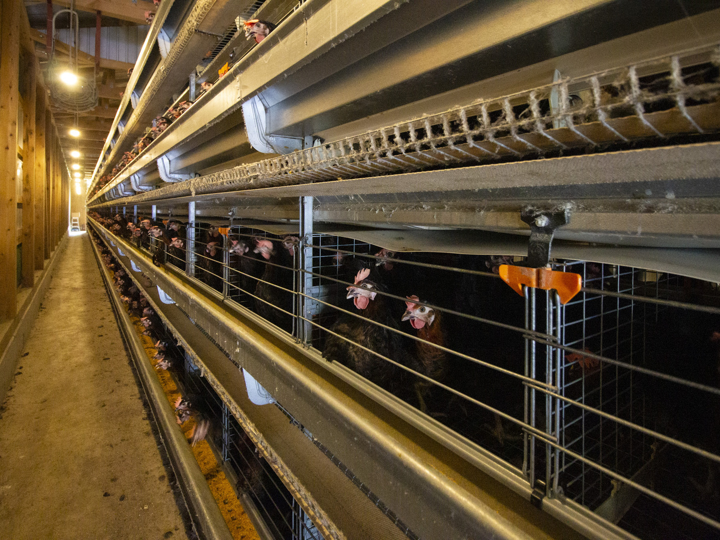 水野谷鶏卵店の黒鶏の飼育量は日本一で、現在、12,000羽の鶏が毎日美味しい卵を産んでいます。鶏舎はウインドレスで、舎内の温度管理がしやすく、光を調整することにより、ストレスの少ない環境を作っています。また、黒鶏はその大きさがゆえにケージ飼が難しいとされていますが、一つのケージの中に通常より少ない数の鶏を入れることによりのびのびと生活できるようにしています。