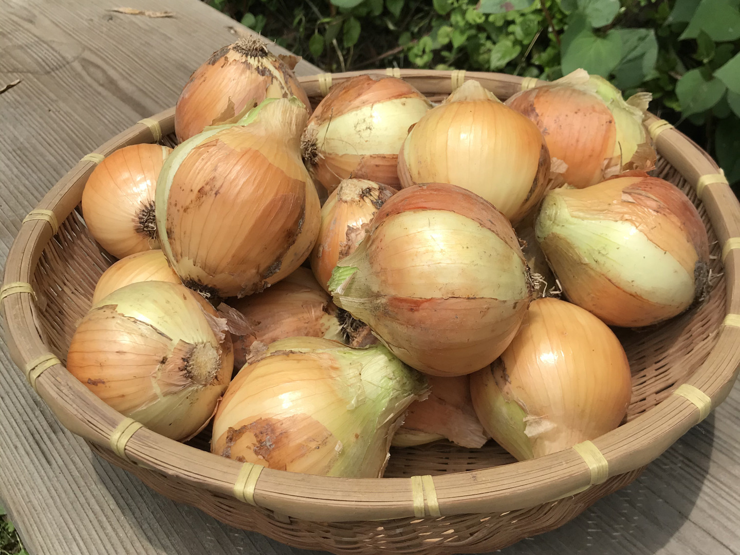 生でシャキシャキ、煮るとトロトロ 有機栽培の玉ネギを食べると他のものは食べられません!!今年の玉ネギは最高でーす!