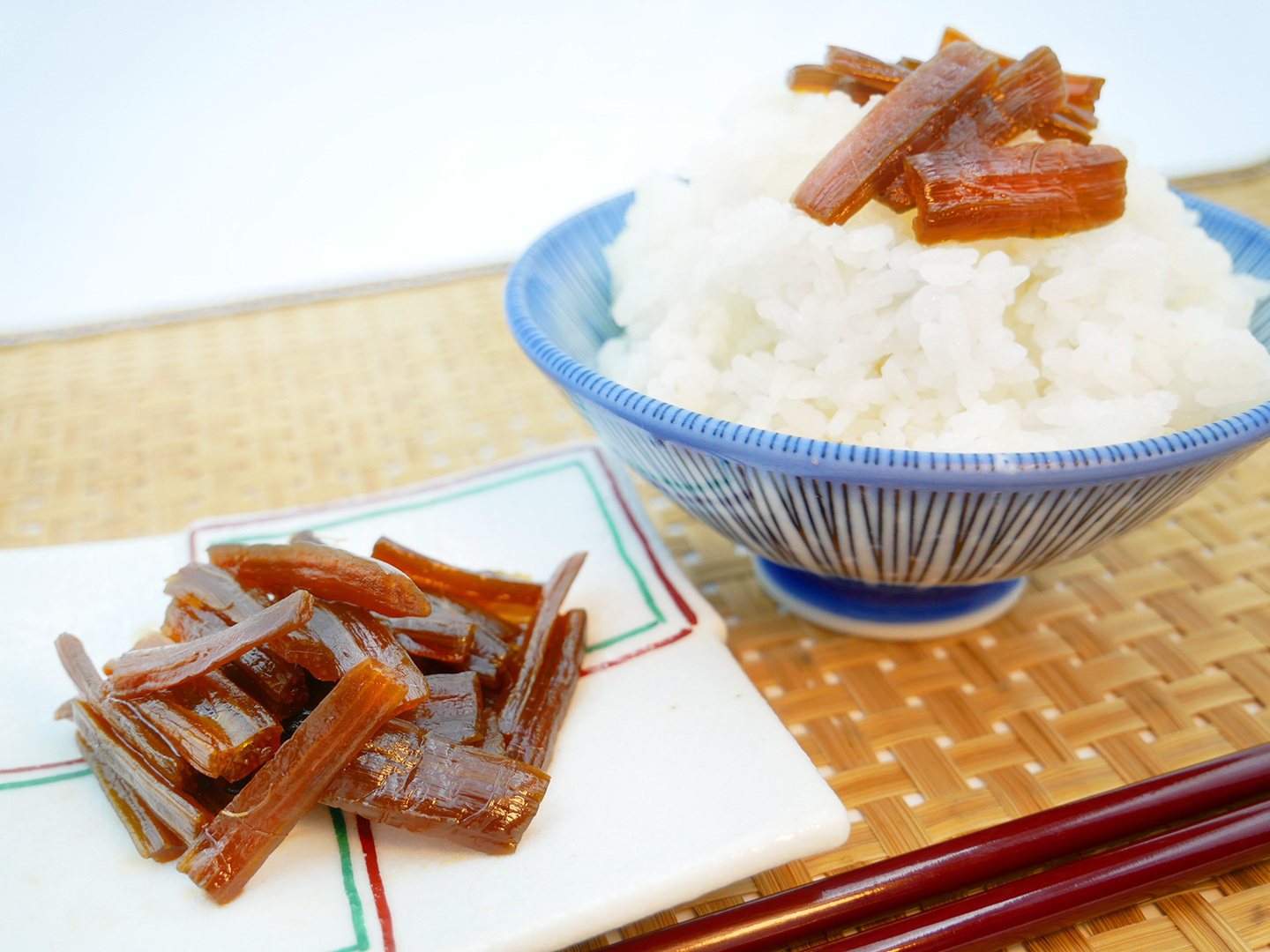 無添加醤油を使い、酒と味醂だけのシンプルな味付けだからこそ際立つ、フキの旨味をご堪能ください。