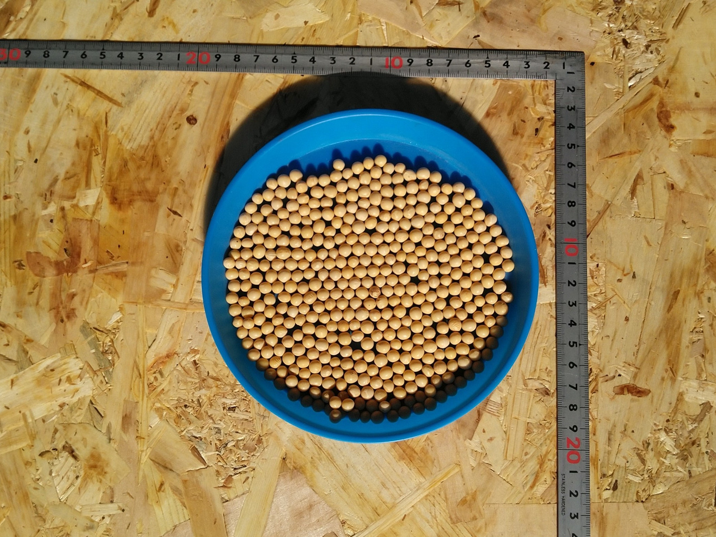 小粒で納豆向きの大豆です。豆腐や豆乳には当農場でも販売している“ユキホマレ”を、よく使用しますが(粒が大きい分、歩留まりが良いため)、豆乳にしても味が良いと耳にしたことがあります。