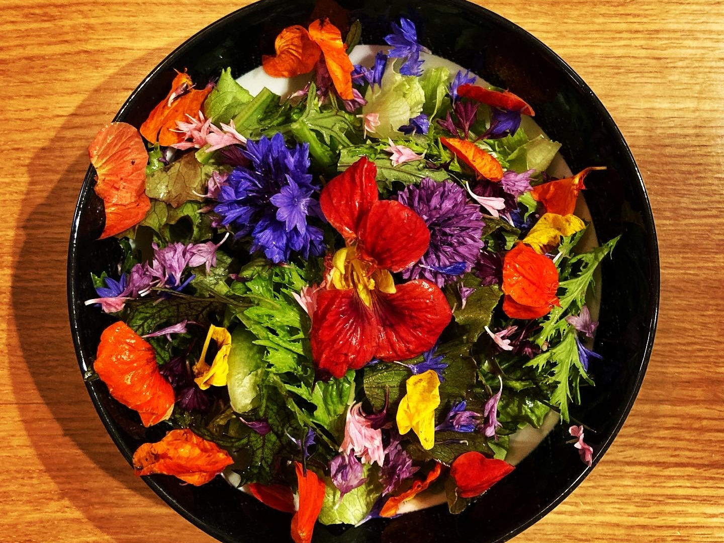 今回は、貴重なヨーロッパ伝統種のミニレタスや季節のハーブなどと共に「フラワーサラダセット」で特別限定販売いたします。