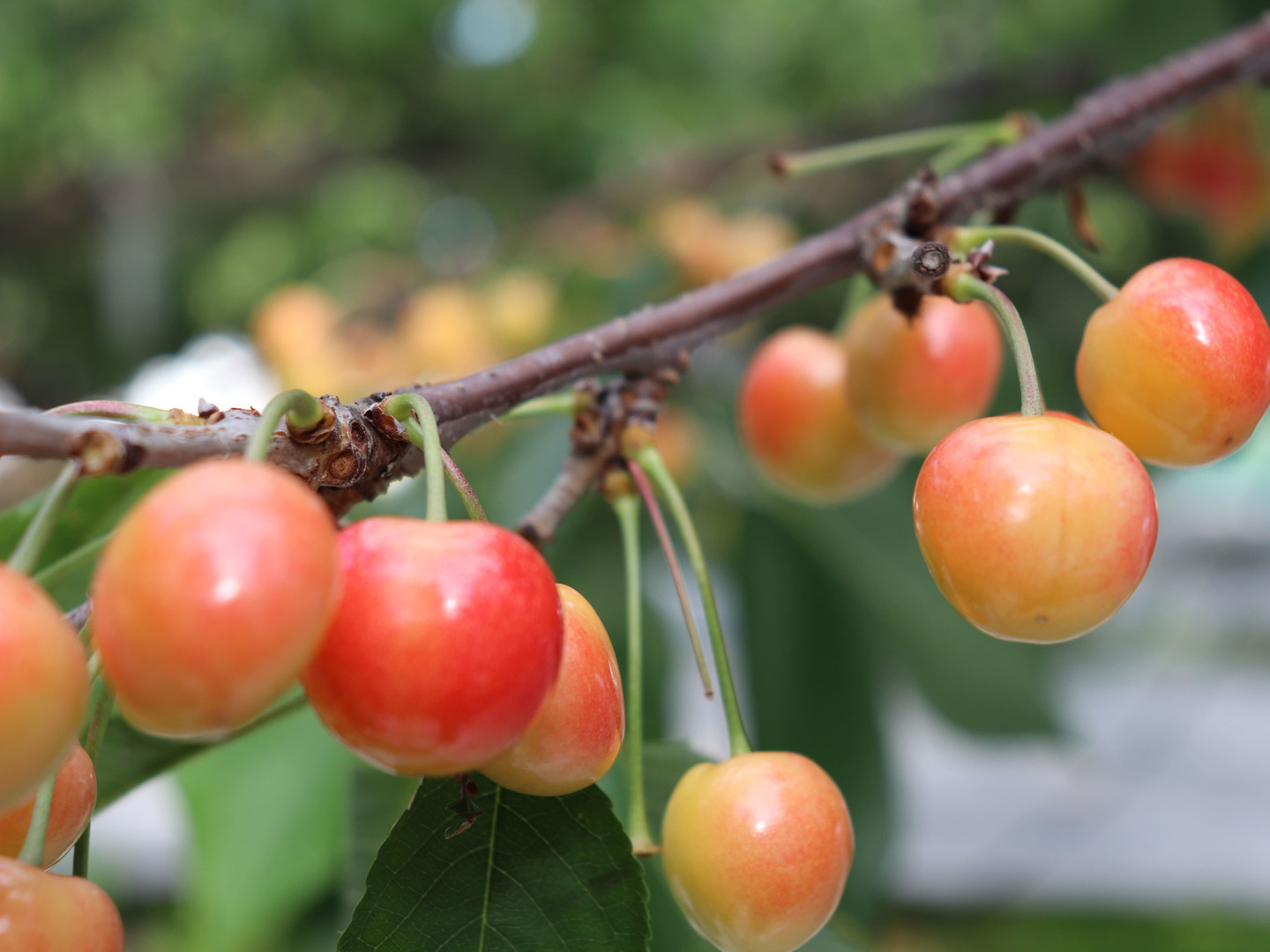 スーパーなどで手にする佐藤錦は摘果が十分にされていないため、大量の数のさくらんぼが取れますが、一つ一つの実に十分な栄養は行き渡らず、太陽の光は満足に届かず、色も薄くなり甘み少なく酸っぱさのみが強調されます。その分、お値段もお求めやすくなります。