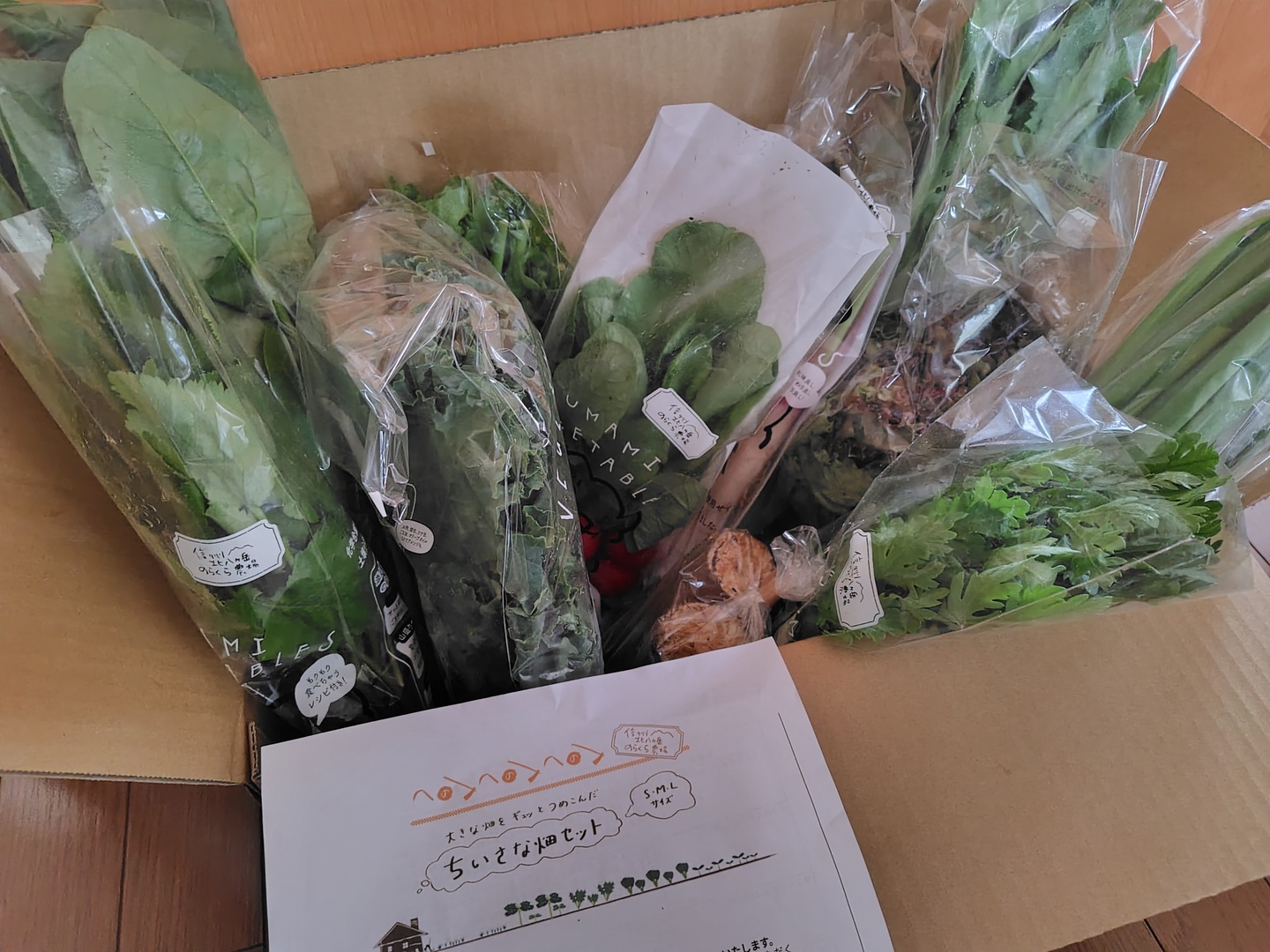 ミニ大根・ミニ白菜・かぶ・にんじん・ラディッシュ・冬菜・ターツァイ +Mサイズほうれん草・キャベツ +Lサイズじゃがいも・小松菜・春菊・広茎水菜 ミニ大根・ごぼう・玉ねぎ・かぶ・キャベツ・広茎水菜・小松菜 +Mサイズ長芋・ターツァイ・春菊 +Lサイズラディッシュ・ミニ白菜・ケール