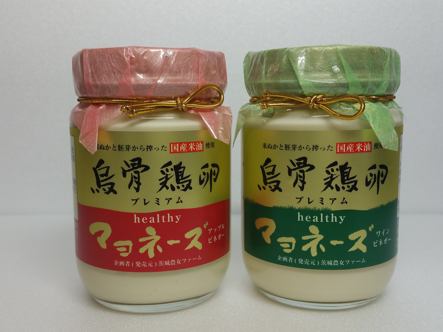 「烏骨鶏卵プレミアムヘルシーマヨネーズ」は、国産米油を使用し、卵は薬用鶏で有名な烏骨鶏卵を使用。