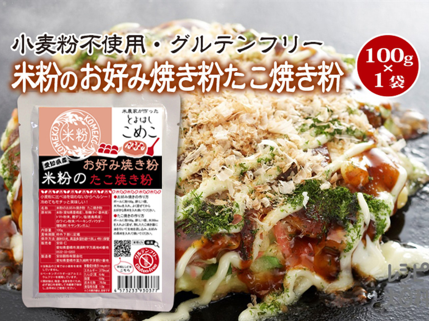 【グルテンフリー】米粉のお好み焼き粉・たこ焼き粉 100g×1袋(とよはしこめこ使用)