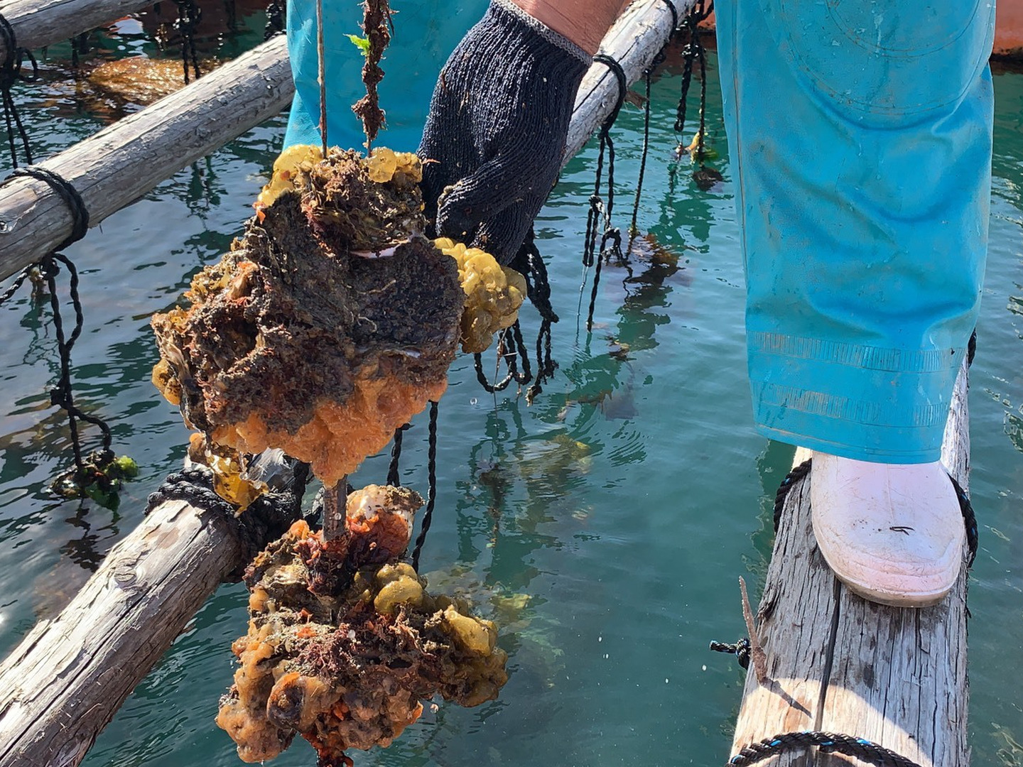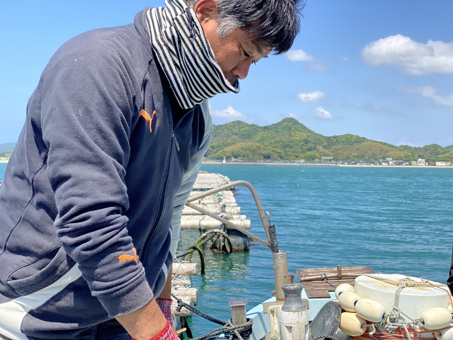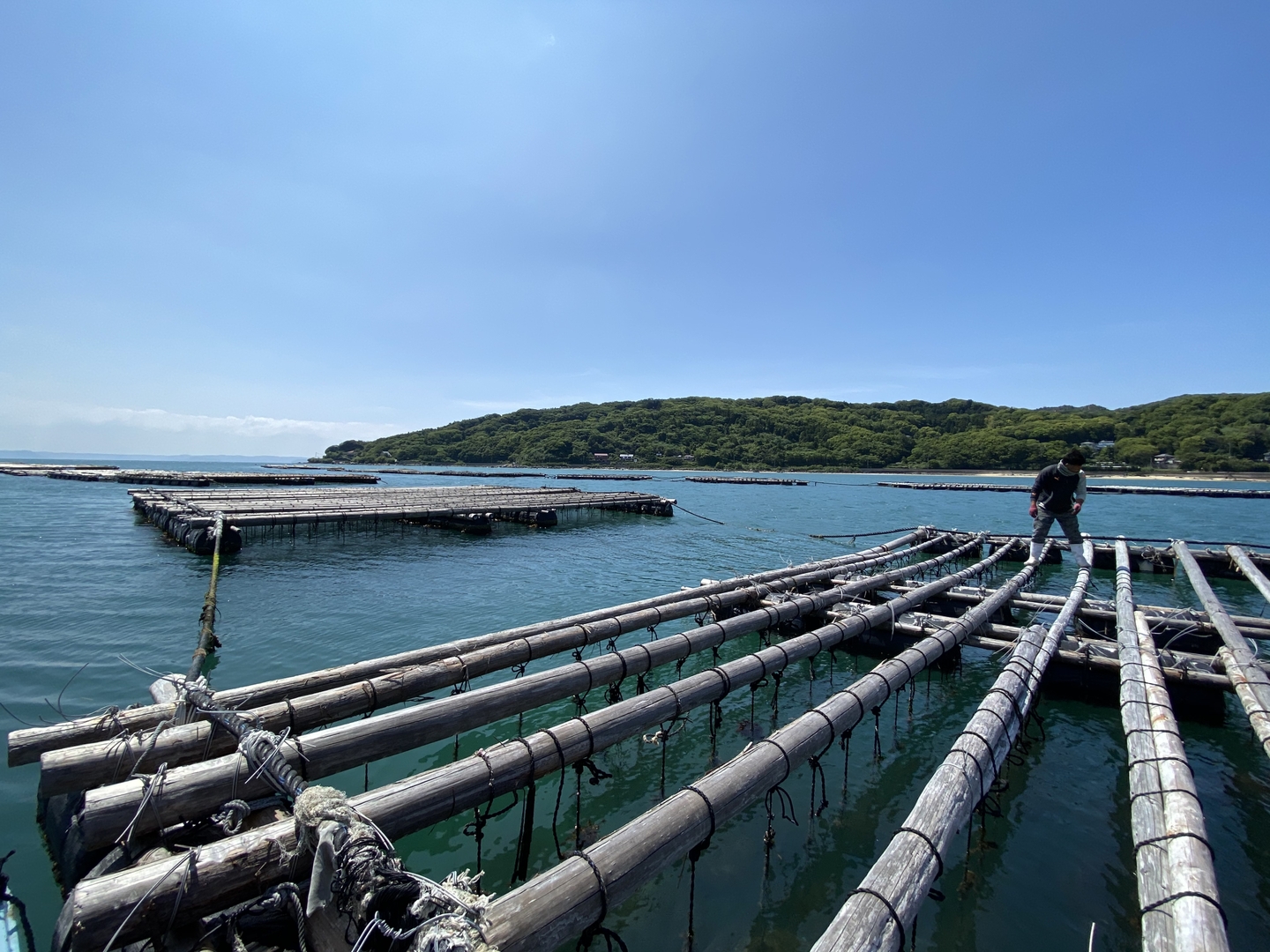 沖合にある牡蠣筏(イカダ)で水深 15mある海域で自然のままの状態で養殖されています。水揚げされた岩牡蠣は24時間以上紫外線殺菌された海水の水槽で循環し、毎月成分検査を実施しております。