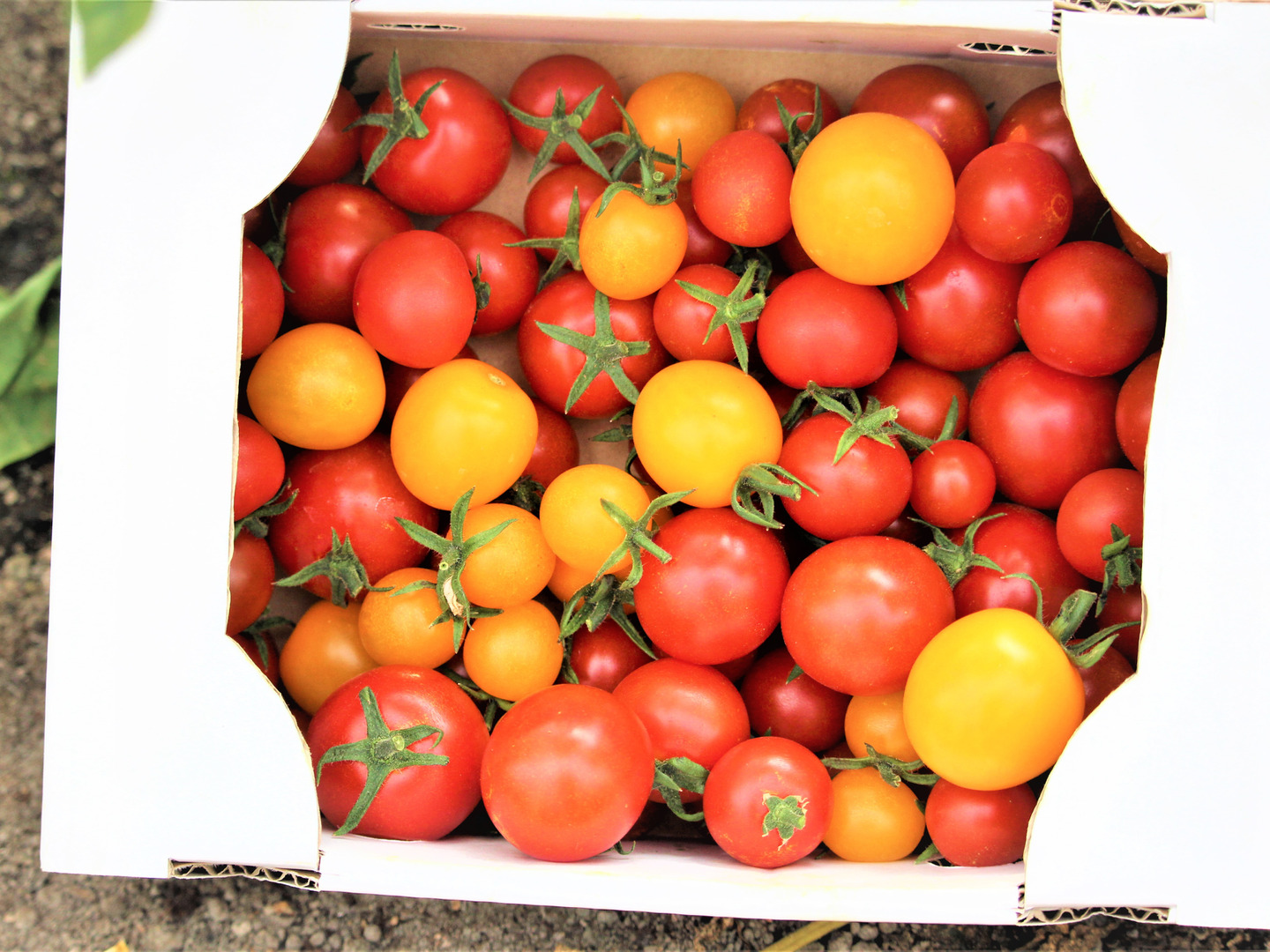 濃厚な味わいで完熟のミニトマトが出来ました。植物性の厳選した有機質資材のみを使い完全無農薬で栽培しています。