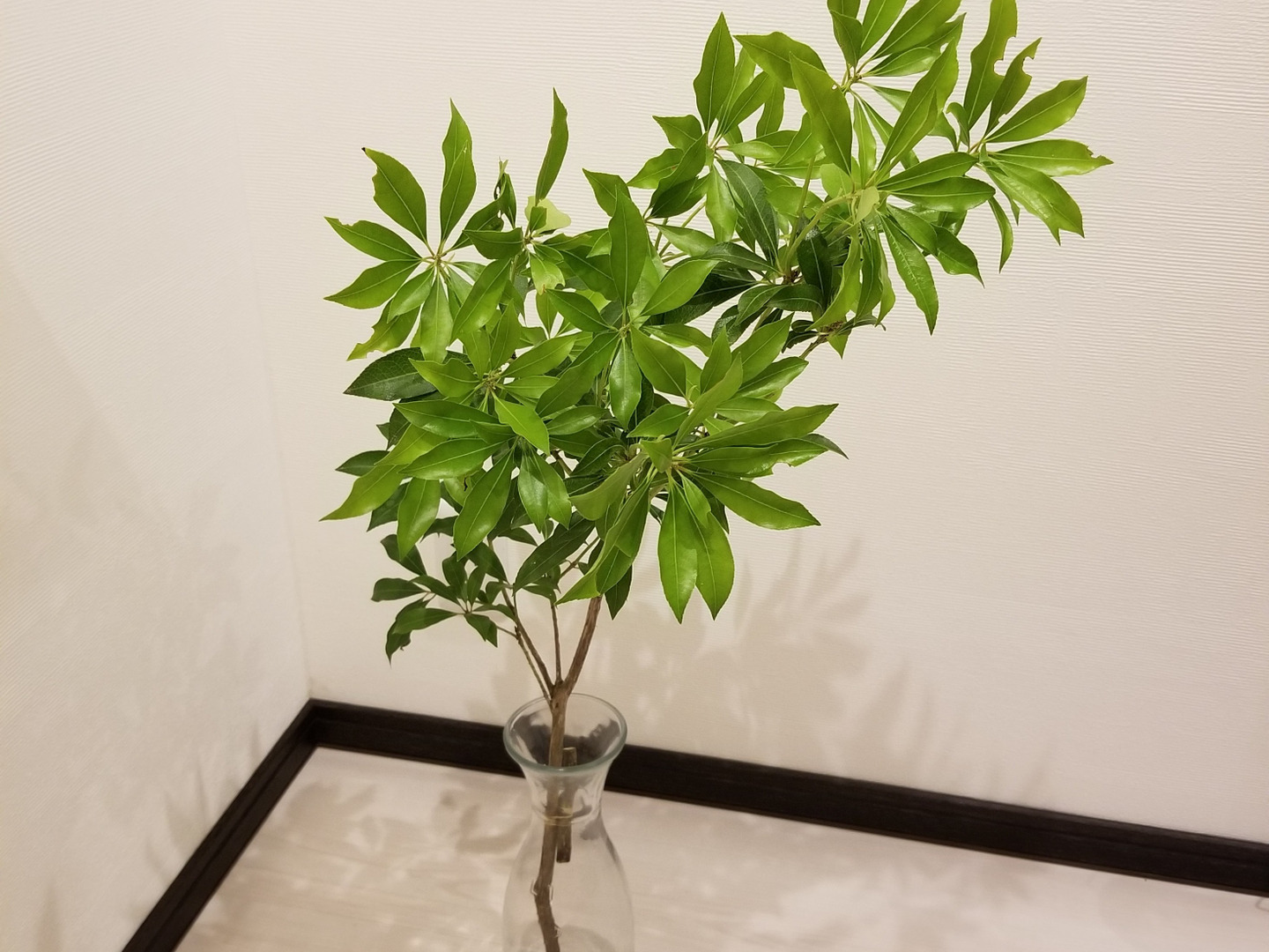 大きめの花器にそのまま挿して飾るだけで、とてもおしゃれです。長く楽しめるのも魅力です。新芽の部分は特に緑が鮮やかです。一本のアセビに緑色の濃淡が混在していることもあり美しいです。