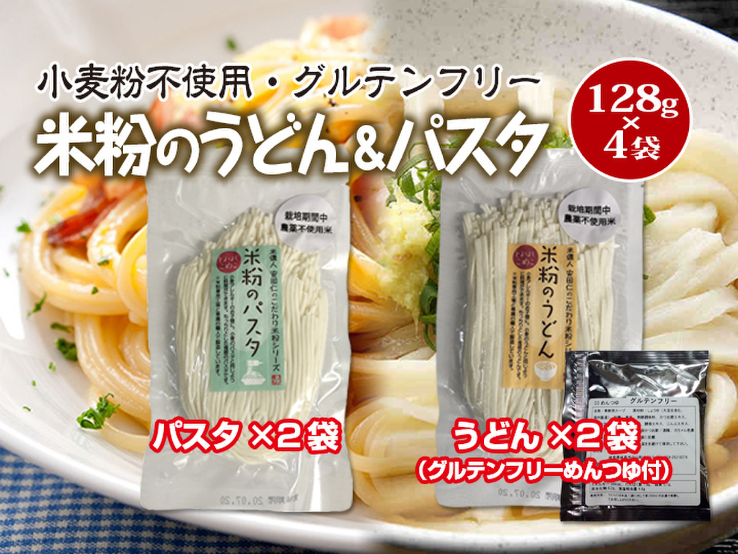 【グルテンフリー】米粉のうどん(グルテンフリーめんつゆ付)(2袋)&パスタ(2袋) セット(とよはしこめこ使用)