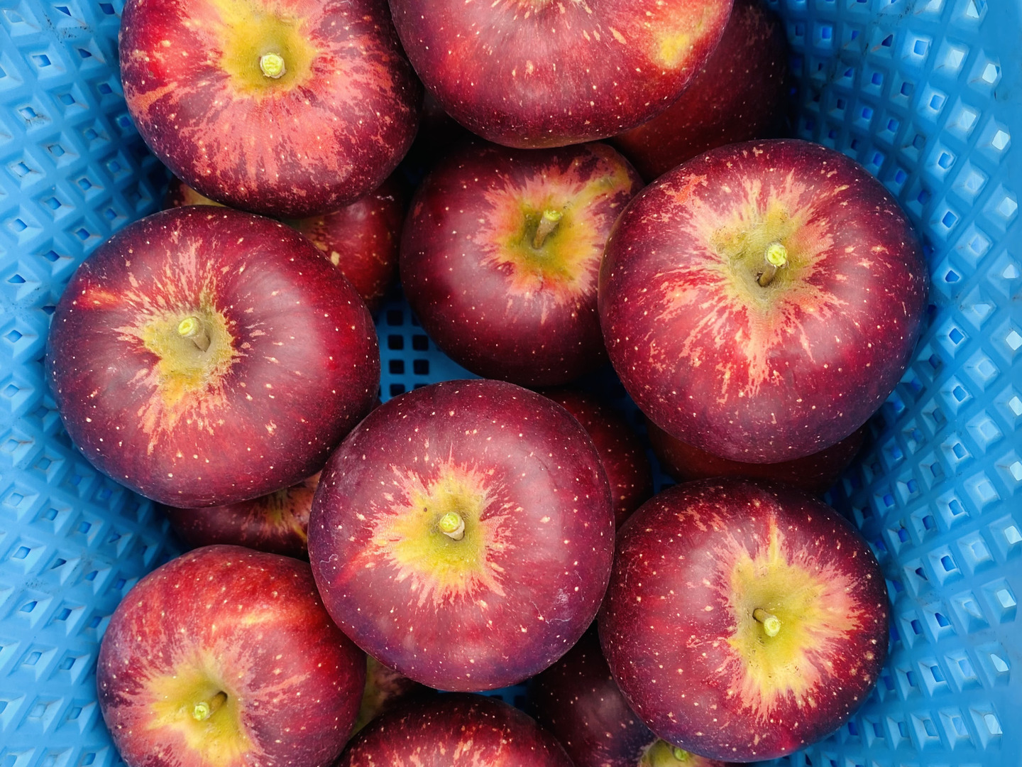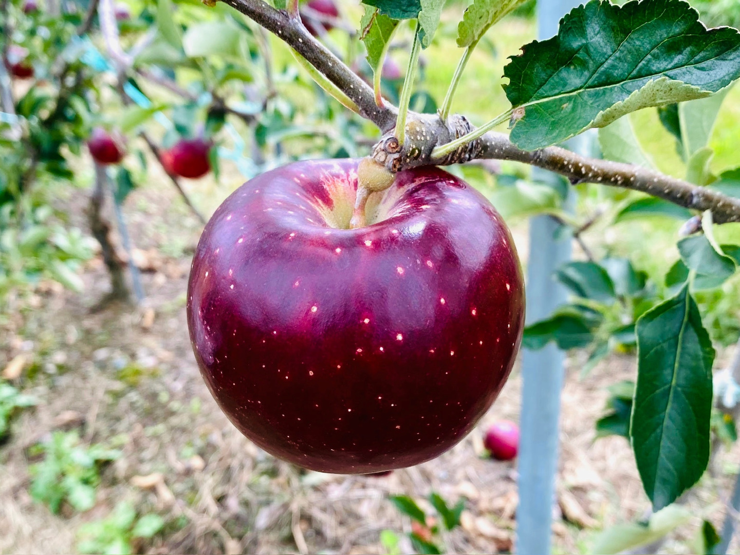 外は鮮やかな赤色、味はシャンパンのような酸味、唯一無二のりんごです。