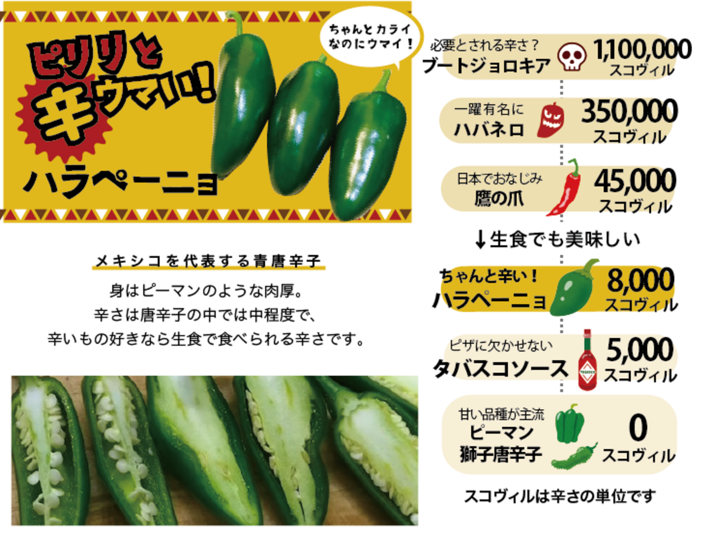 この時期にしか楽しめない新鮮な生ハラペーニョの味のある辛さと、ザクザクとした食感を