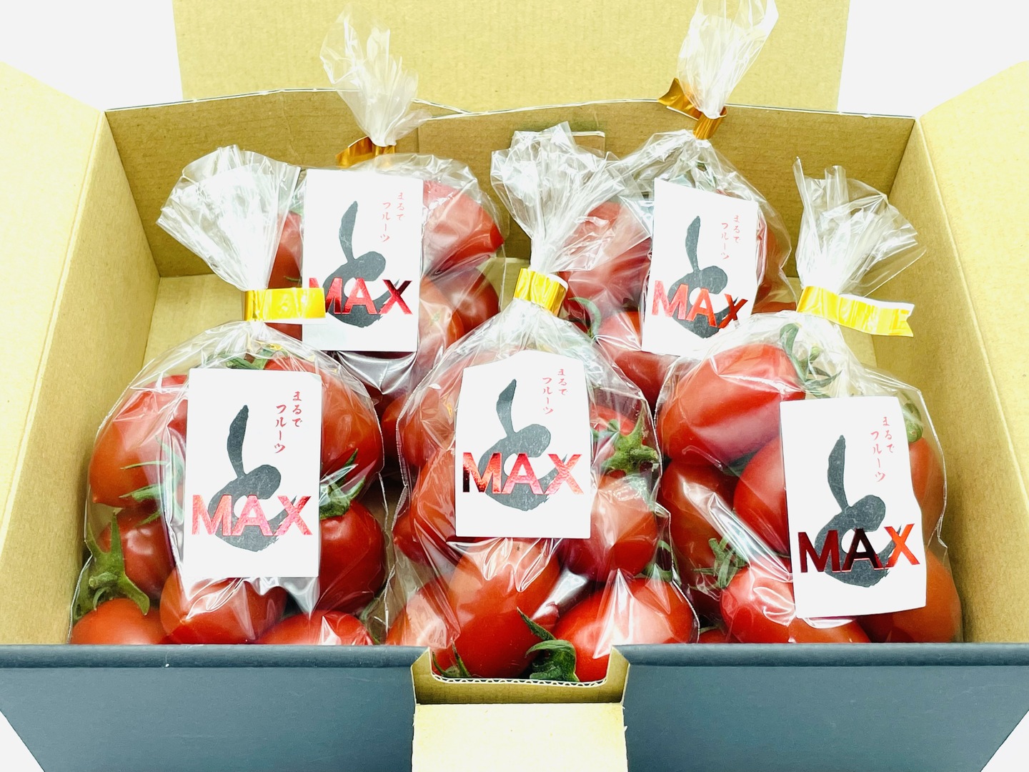 当農園では、通常夏トマトが生育するのに必要な1日の水分量約500mlの1/5と極限に近い栽培を行っております。「とMAX」は甘さを追及している為一般的な農家の約6割程しか収穫出来きませんので量に限りがございます。