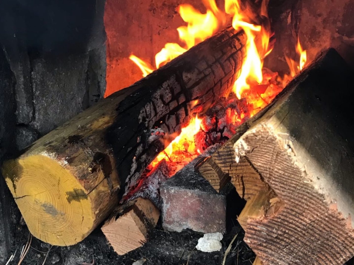 丁寧に何度も何度もマキを加え火加減を見ながら