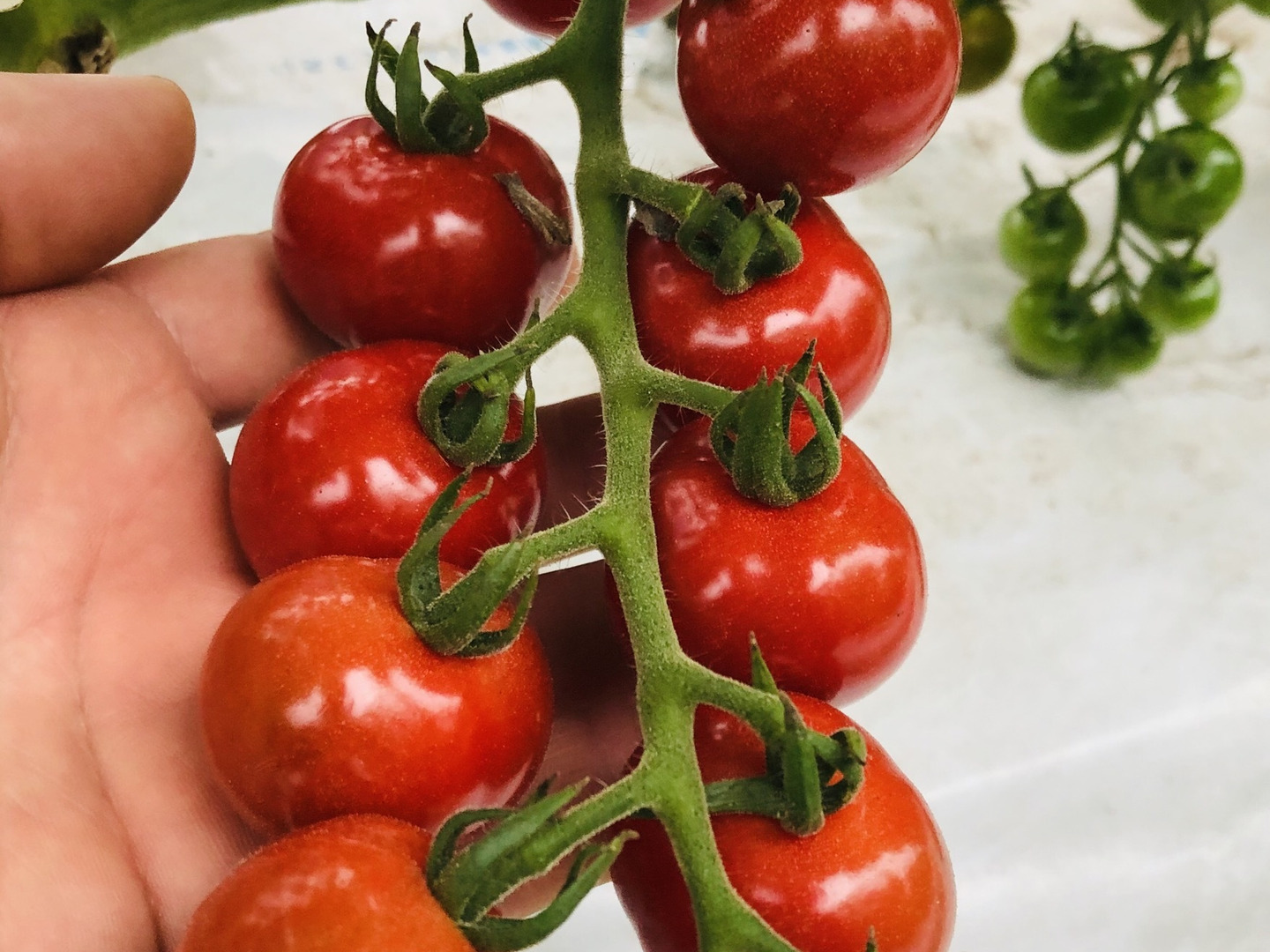 ●トマトのヘタ部分が果実に傷をつけてしまうことから、収穫時にヘタをとりのぞいております。ご理解をお願い致します😌