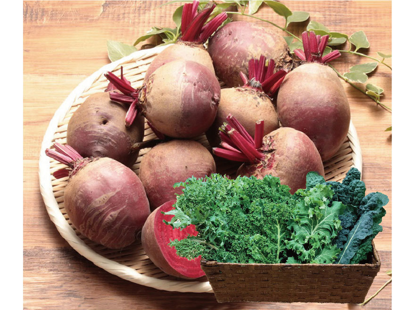 栄養たっぷりの真っ赤なビーツとケールをセットにしました。