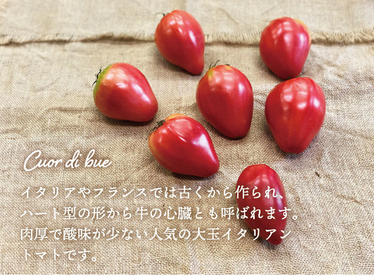 イタリアントマトの中でも酸味が少なく、肉厚で食べ応えのあるトマトです。