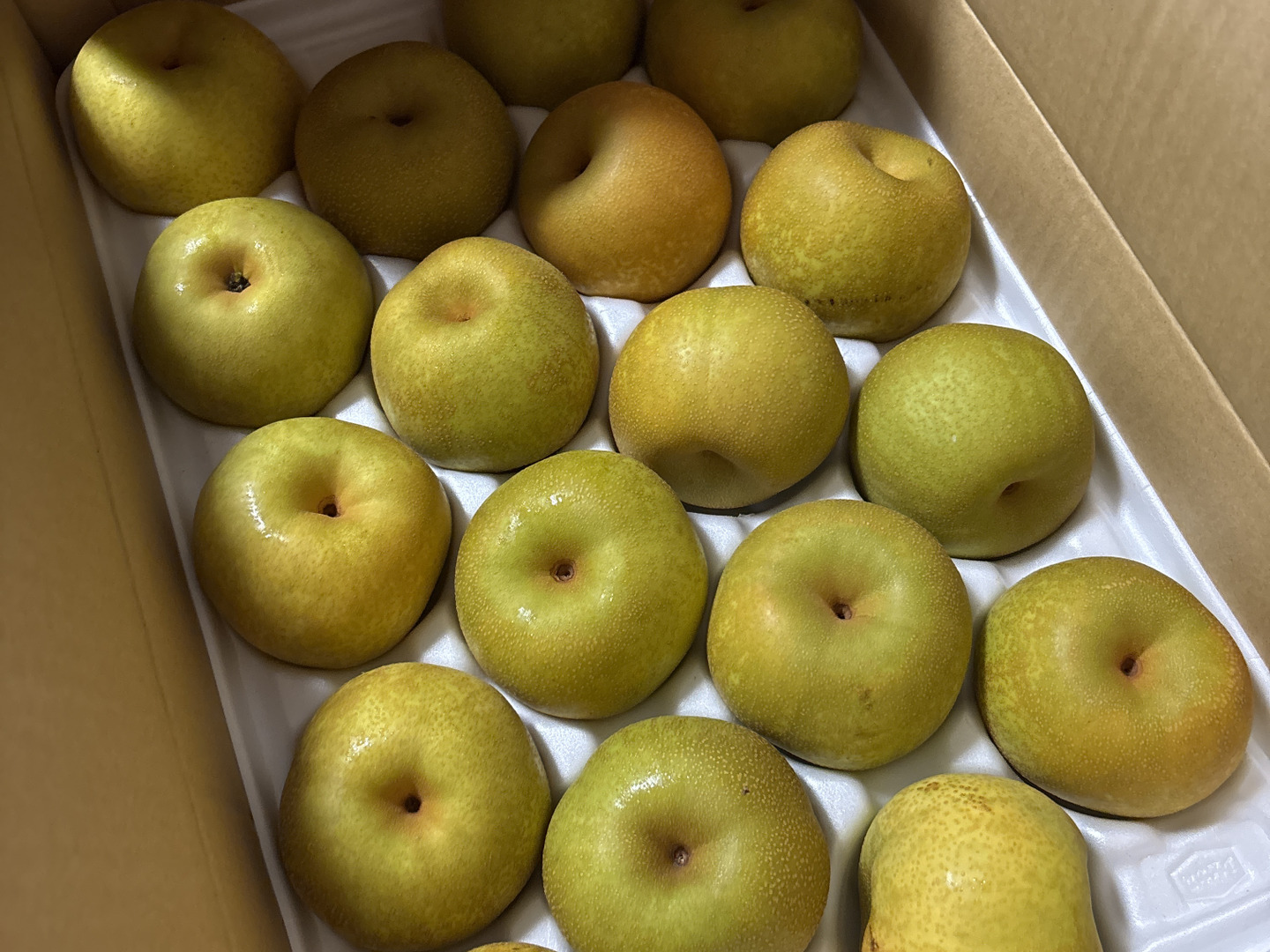 現在林農園では、5種類の梨、幸水・豊水・新高・新興・林農園オリジナルの日迎に富有柿、無農薬米と夏に始まる梨の収穫から冬は木にお礼肥えや剪定と年中休む事なく農業が行われています。