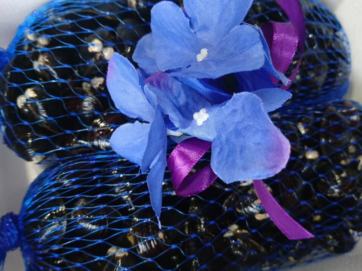 お父様の健康と長寿を願って茨城県涸沼川湖産のしじみはいかがでしょうか。父の日用に青い造花などを透明の袋に入れてご用意します。