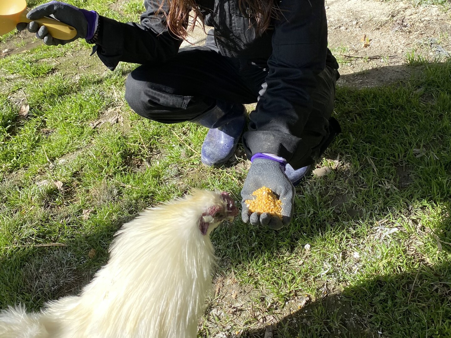日々畑の雑草や虫をつついて健康な烏骨鶏。雄も一緒にいるので有精卵です。