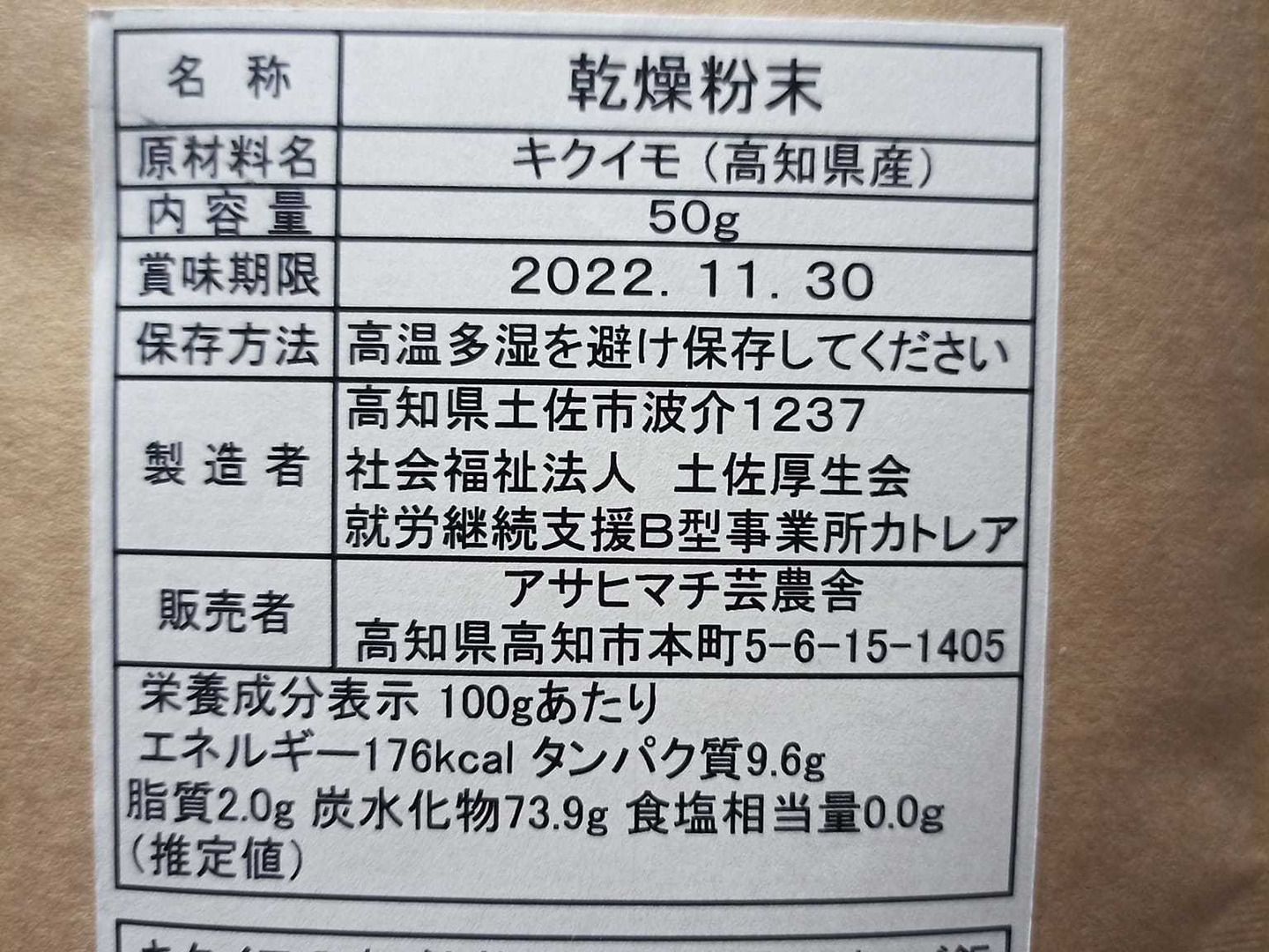 乾燥きくいも粉末(パウダー)50g