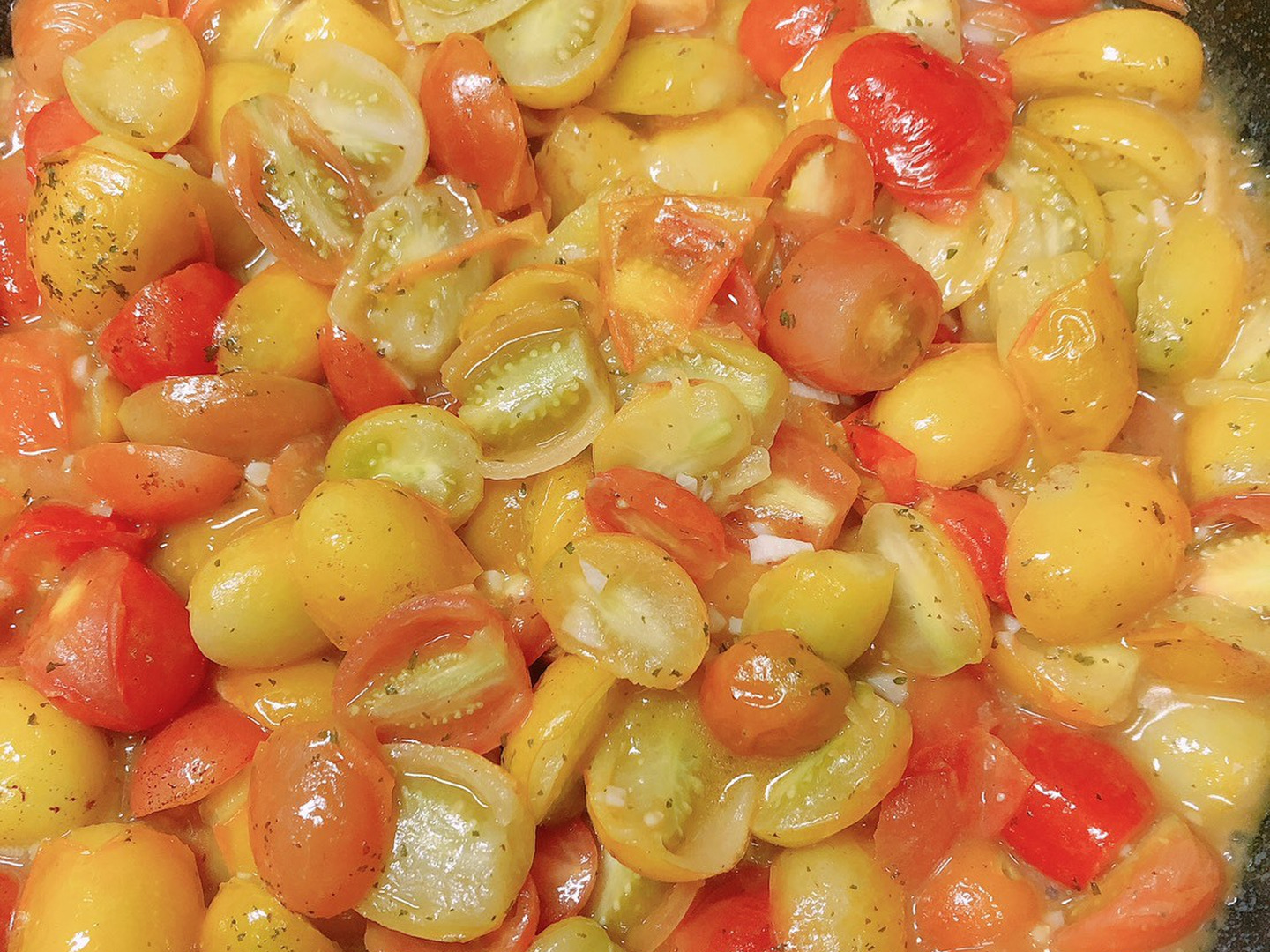 ミニトマトはアイコという品種です。少し酸味があり、加熱するとコクと旨みが増し美味しさが増します。アイコ特有のクセになる旨味とコクが出ます。ピクルス、マリネ等のほかトマトパスタ、ピザのトッピングに適してます。アイコを存分に使ったで100%トマトのパスタはほとんど病みつきになる旨さです。