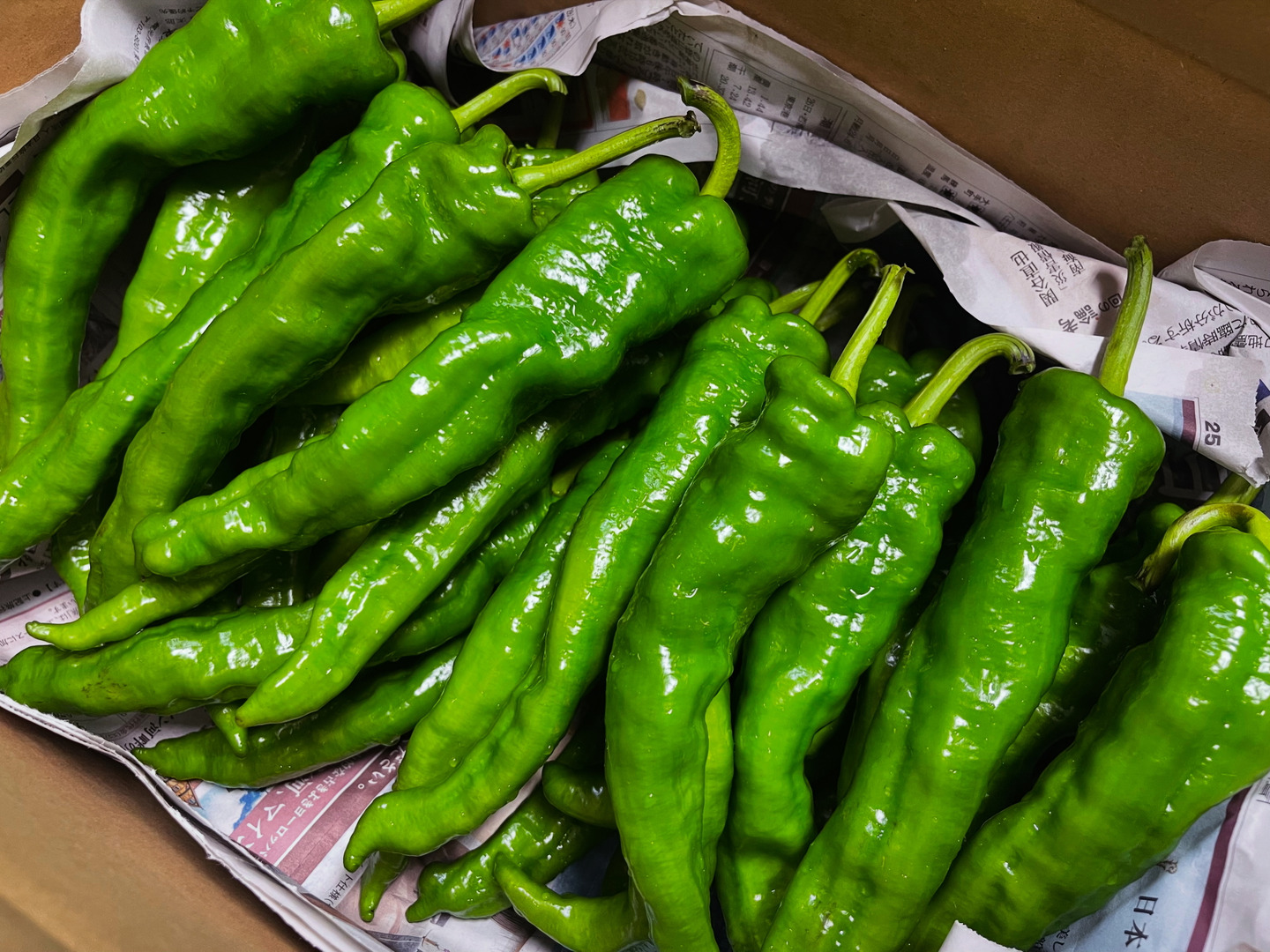朝どれの甘長とうがらしを、その日のうちに箱に詰めてお送りします。
